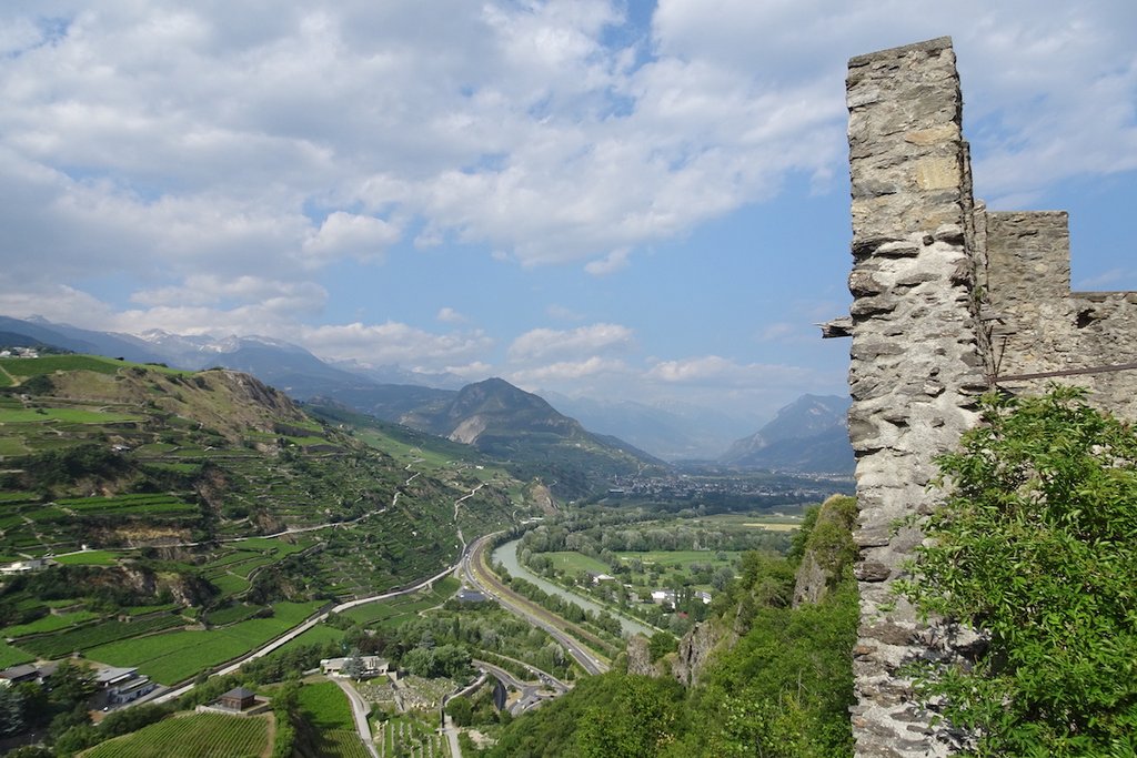 Heisser Wind, südliches Ambiente und Kakteen. Eine Reise nach Sion im Wallis mit Wanderung auf die Hügel Valeria und Tourbillon ersetzt Ferien irgendwo am Mittelmeer oder gar in Amerika. Der Weg führt vom Bahnhof in die Stadt Sion, dann rechts bis zur mittelalterlichen Altstadt. Dort zeigen Wegweiser hinauf zur Valeria.
