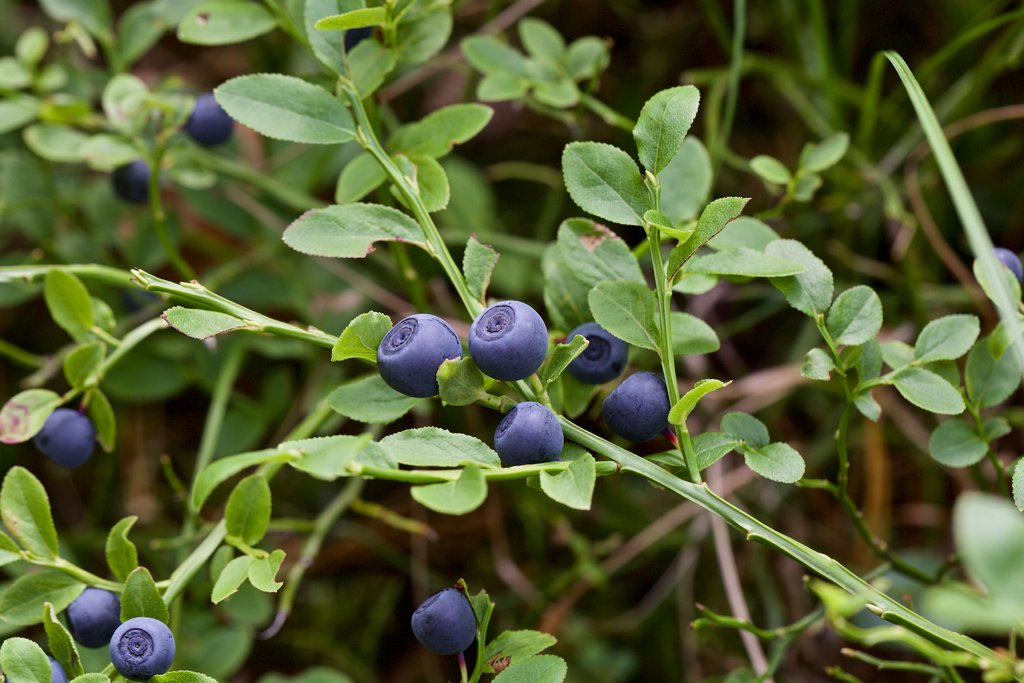 Die Heidelbeere, Schwarzbeere, Blaubeere oder Myrtille kann auch wild geerntet werden. Der bis zu einem halben Meter grosse Strauch bevorzugt saure Böden in Laub- und Nadelwäldern oder Moor- und Bergheiden. Seine Blüten sind unscheinbar, die Frucht hingegen kennt man. Die dunkelblauen Beeren sind reich an Vitaminen und Mineralstoffen.