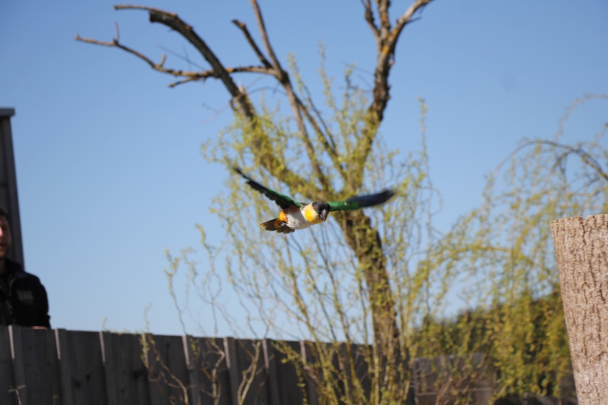 Freiflugtraining für Papageien und Geier im Walter Zoo in Gossau