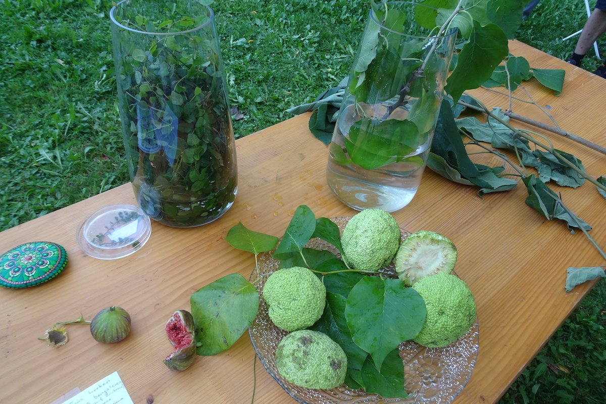 Und schliesslich ist da noch der Feigenbaum, dessen süsse Früchte im Herbst entzücken und dessen gezähnte, auffällige Blätter eine Zierde darstellen. Auch er ist ein Maulbeergewächs und ist Begleiter der Menschheit seit tausenden von Jahren. Die Feige wird bereits in der zweiten Schöpfungsgeschichte der Bibel erwähnt. Ihre Blätter dienten Adam und Eva wegen ihrer Form und Grösse als Kleidung. Feigen waren zudem ein wichtiges Nahrungsmittel im Nahen Osten.