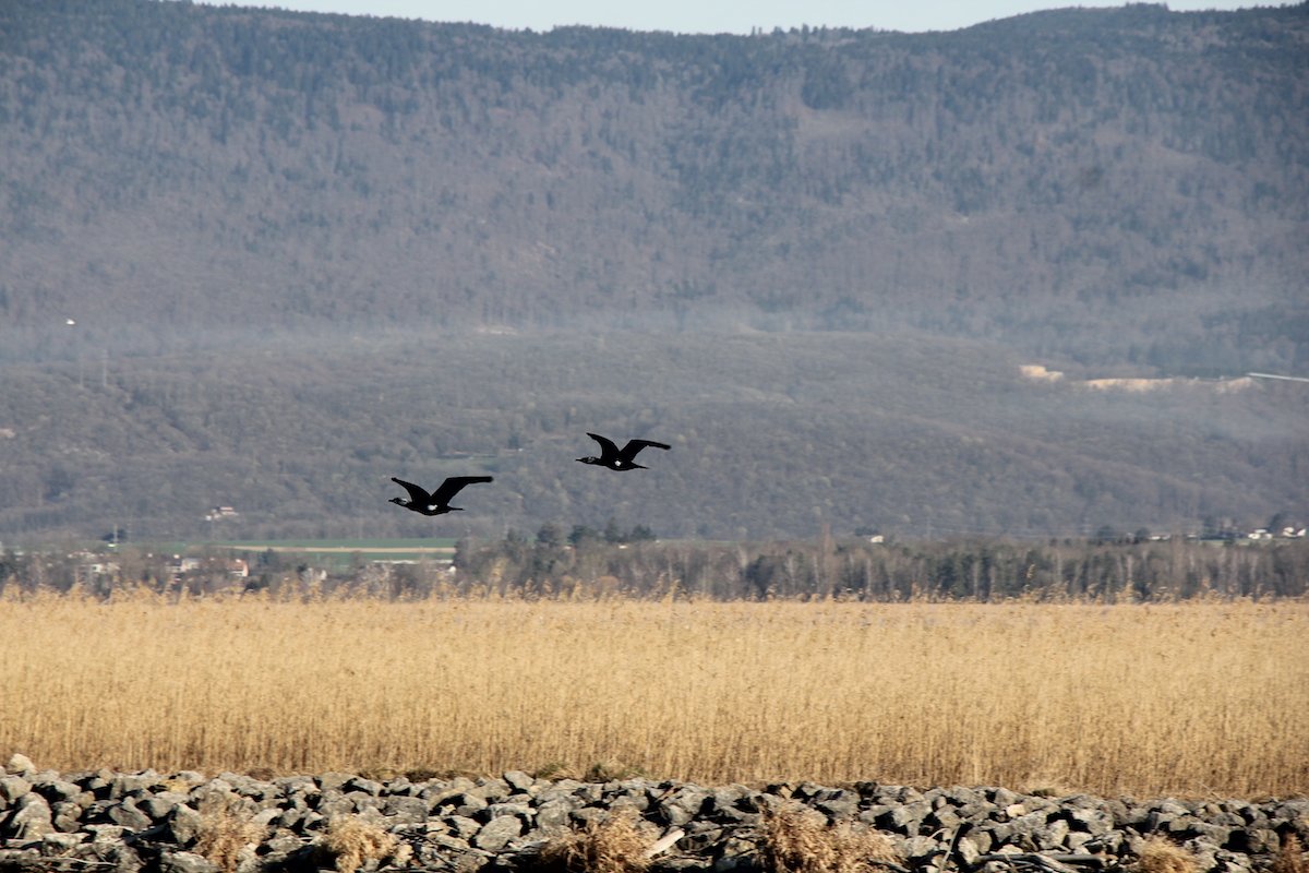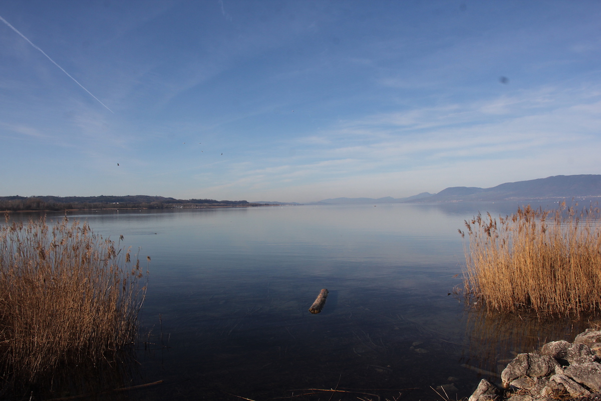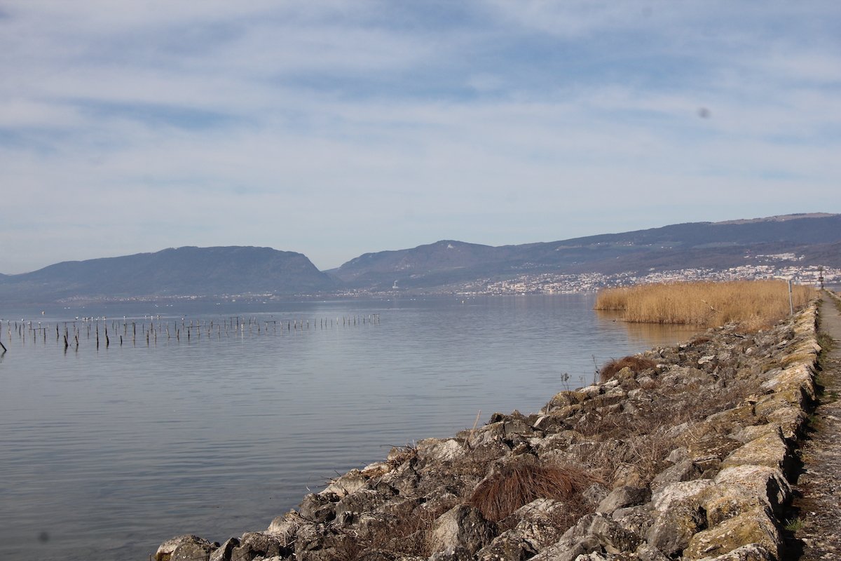 An einem sonnigen, windstillen Frühlingstag im März bewahrheitet sich der Hinweis. Die Hafenmauer zieht sich lange in den See, rechterhand der stille Kanal, der den Murten- mit dem Neuenburgersee verbindet. Kormorane schnarren von der anderen Seite weit entfernt auf einem Baum.