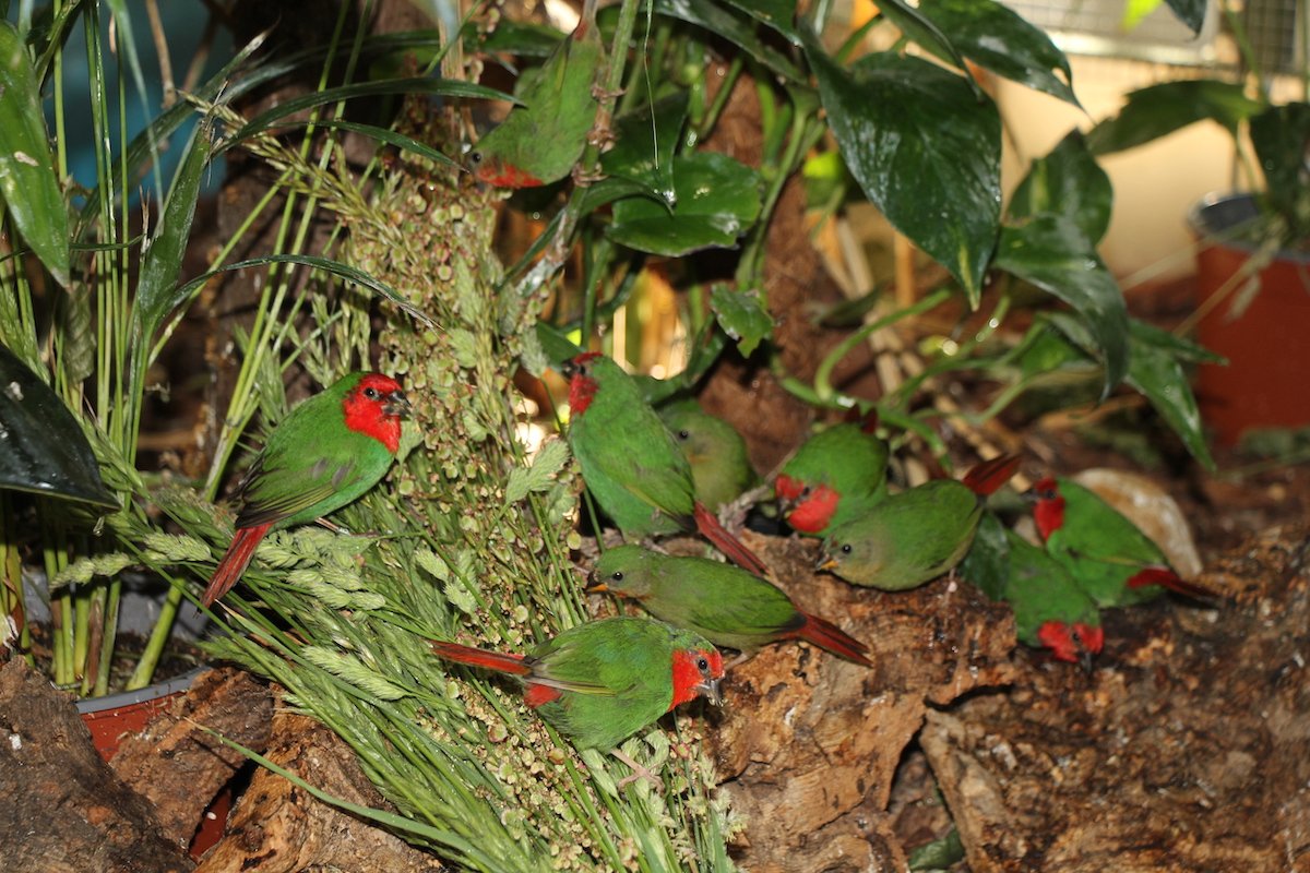 Wellensittiche beispielsweise stammen ursprünglich aus trockenen, savannenartigen Gebieten Australiens. Dort fliegen sie in grossen Schwärmen und ernähren sich in der von Gras durchsetzten Savanne hauptsächlich von den Sämereien der Gräser. Sie sind darum oft am Boden anzutreffen, wo sie mit ihren kleinen Schnäbeln nach den Samen nesteln.