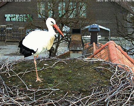 Kurz nach 15 Uhr am Samstagnachmittag, 25. Januar, dürften viele Augen im Nationalen Pferdezentrum (NPZ) in Bern nach oben geblickt haben. Der Grund ist einfach: Das Weissstorchweibchen ist in die Bundesstadt zurückgekehrt. Um 15.05 Uhr hat die Webcam «Berner Storch» die erste Aufnahme der Storchendame geschossen. So früh ist die Storchendame, die seit 2017 in Bern brütet, noch nie zurückgekehrt.