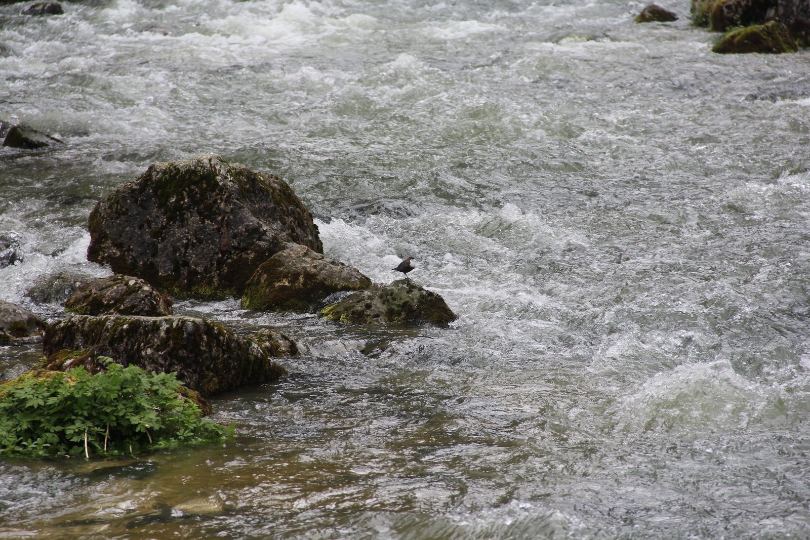 Die Wasseramsel ist der einzige Singvogel, der auch tauchen und sich auf dem Grund der Gewässer fort-bewegen kann. Sein dichtes Gefieder isoliert optimal. Bei der Jagd blitzt am schieferfarbenen, fliessenden Wasser plötzlich etwas Weisses auf: Die Brust der wippenden Wasseramsel. Nun fliegt sie knapp über die schäumende Wasseroberfläche auf einen anderen Stein, hält dort kurz inne und stürzt sich dann in die Fluten. Sie ist einfach verschwunden, auch bei winterlicher Kälte, bis sie unvermittelt ganz woanders wie ein Korken aus dem Wasser schiesst und auf einen Stein flattert. Ihr Gefieder zeigt sich makellos.