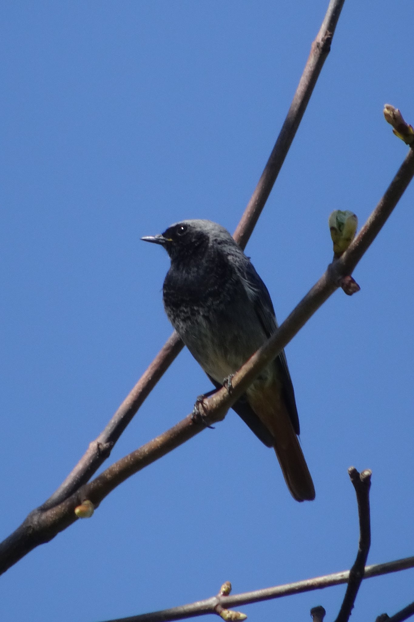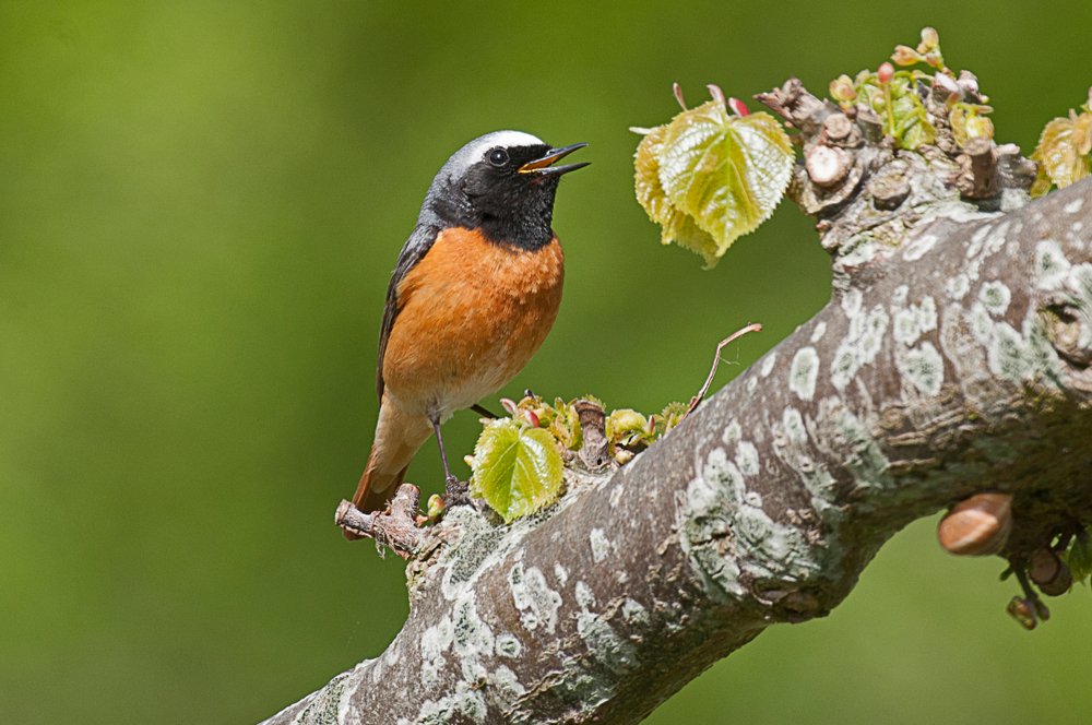 Ab April ist der Gartenrotschwanz wieder zurück aus Afrika. Er singt rund 80 Minuten vor Sonnenaufgang als erster Vogel, gefolgt vom viel häufigeren Hausrotschwanz, der bald danach einsetzt. Rotschwänze jubilieren allerdings nicht. Gartenrotschwänze haben einen wehmütigen Gesang, Hausrotschwänze knirschen gepresst. Wenn sie sich erstmals melden, ist es noch dunkel.