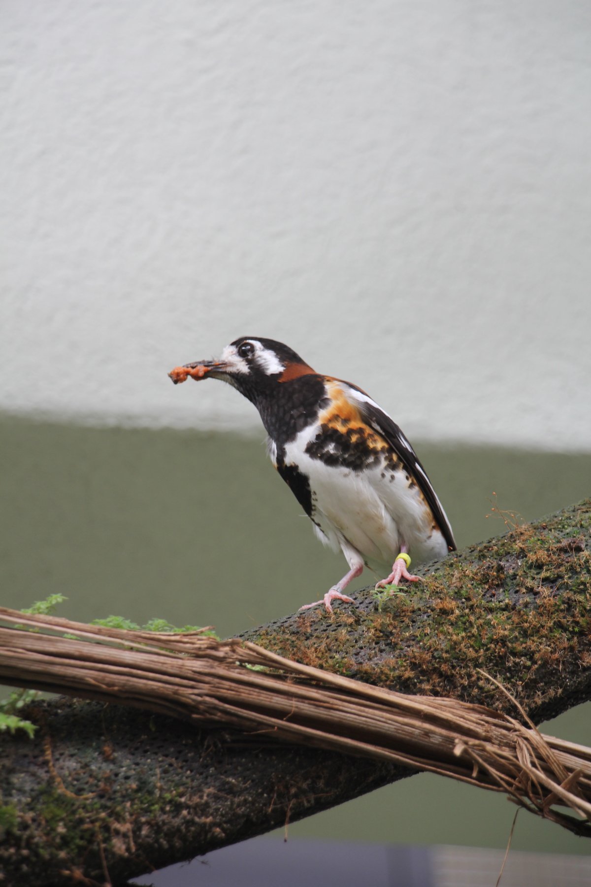 Ebenso stammen die Omeihäherlinge aus China und sind gefährdet. Auch sie teilen sich den Lebensraum in der Basler Freiflughalle mit all den anderen Arten, haben Nester gebaut und Junge aufgezogen. «Bei dieser Art können die Jungen noch bis im Frühling in der Halle bleiben, dann werden sie von den Eltern weggejagt», gibt Jess Borer zu bedenken. Wenn Junge ausfliegen, sind sie noch unbeholfen. Das ist der Moment, wo sie vom erfahrenen, langjährigen Vogelpfleger Burkhard Monsch kurz gefangen und mit einem Farbring gekennzeichnet werden. So können die Individuen identifiziert werden. Muss der Tierpfleger Altvögel aus der Halle fangen, gelingt dies in abgesonderten Käfigen, wo die Vögel hineinfliegen, um Futter aufzunehmen. Junge der Schamadrossel, die vom Geländer aus ihre Eltern anbetteln, müssten bald entnommen werden. «Diese Art beachtet den Nachwuchs rasch als Konkurrenz», erklärt Jess Borer.