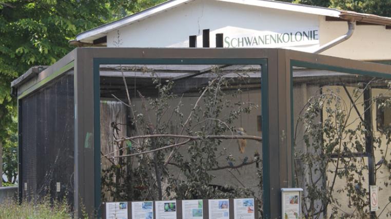 Wellensittiche plaudern, Nymphensittiche rufen und zwei Grosse Alexandersittiche ruhen sich auf einem Ast in der Höhe aus. Passanten, die dem Flüsschen Schüss entlangspazieren, erfreuen sich seit 120 Jahren an verschiedenen exotischen Vögeln in den fünf sehr vorbildlich eingerichteten, sauber gehaltenen und grossen Volieren der Schwanenkolonie. Kramer, der oft auch noch spät am Abend nochmals bei seinen Vögeln vorbeikommt, sagt: «Wir züchten nicht, sondern wir wollen den Vögeln, die nicht mehr gehalten werden können, gute Lebensbedingungen ermöglichen.»