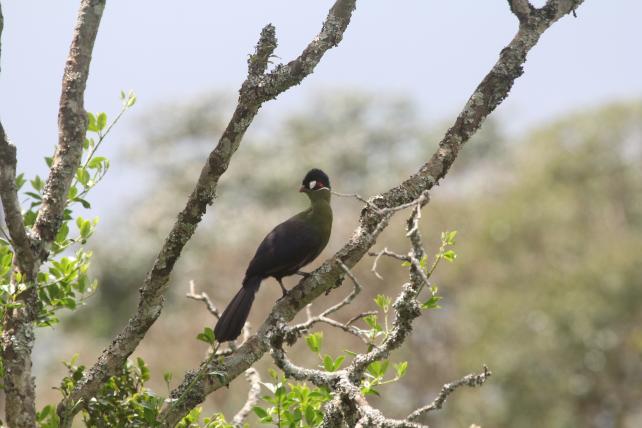 Weissschwanzguerezas sitzen in Astgabeln und lassen ihr Fell an der Sonne trocknen. Hinter ihnen ziehen sich Hügel und Abhänge voller urtümlichen Waldes weit in das Land. Der gelassene Blick dieser Stummelaffen schweift über die Weiten, und ich denke an das Afrika der unbegrenzten Freiräume, der Ruhe und der grossartigen Schönheit, so wie ich es mir immer erträume. Als am Nachmittag ein heftiges Gewitter durch die Aberdares zieht, kalter Wind um die Fishing Lodge bläst und heftiger Regen auf das Blechdach prasselt, kann ich mich entspannt und getrost meinen Notizen widmen: Der Reichenows-Kongopapagei ist nicht mehr eine Legende, sondern ich habe ihn tatsächlich ausgiebig beobachten können, dank Samuel Mugo, dem kenntnisreichen Ornithologen Kenias. Dennoch ist kaum etwas zum Leben dieses Papageis bekannt: Auch Mugo hat noch nie einen Brutbaum gefunden, erzählt mir lediglich, dass die Bestände der Aberdares manchmal an die Abhänge des Mount Kenya flögen, dass es in den Aberdares aber deutlich mehr dieser Papageien habe.