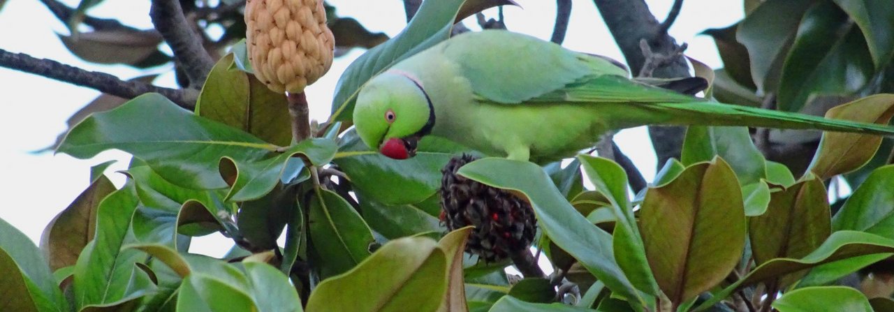 Zur Familie der Papageien gehören auch die Sittiche. Seit tausenden von Jahren währt die Beziehung des Menschen zu einem grünen, länglichen, eleganten Sittich mit rotem Schnabel aus Asien, dem Indischen Halsbandsittich. Die Männchen tragen ihrem deutschen Namen entsprechend ein dünnes, schwarzes Halsband, das von einem roten Hauch umrandet ist – eine Besonderheit bei den Papageien. Meistens sehen nämlich Männchen und Weibchen genau gleich aus.