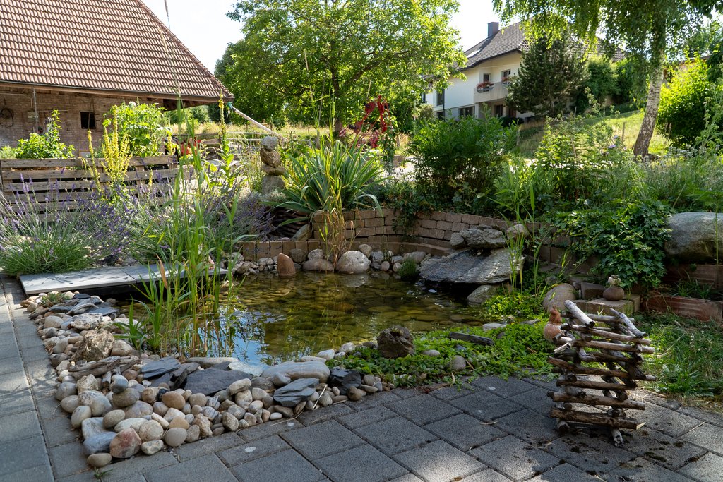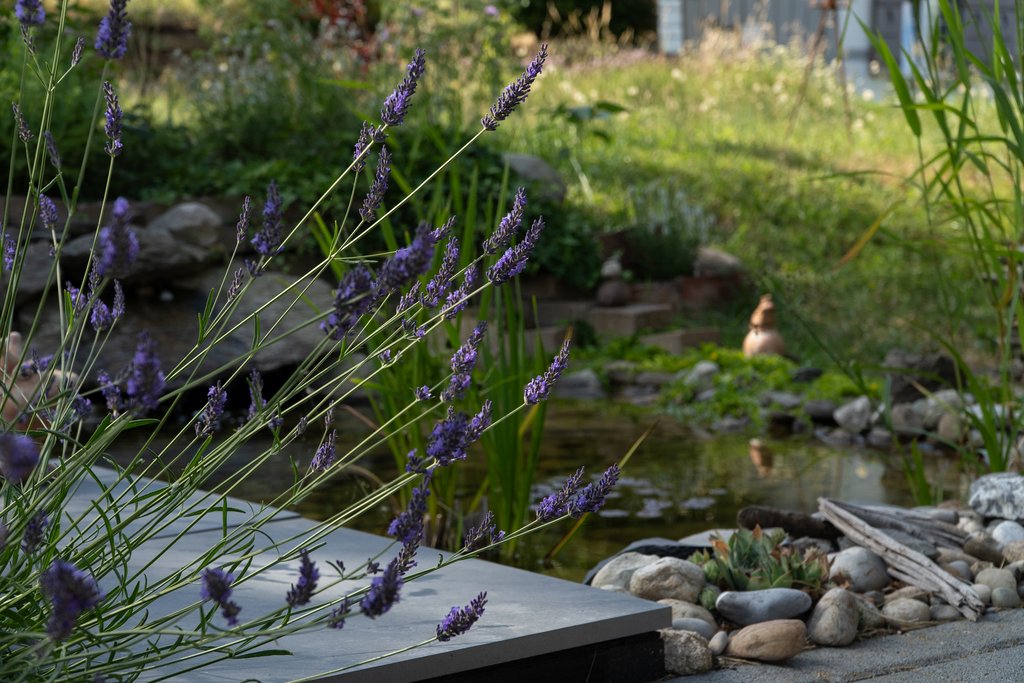 Das Aufwendigste im Projekt war bis jetzt der Teich. Es ist wichtig, dass er eine gewisse Grösse und verschiedene Wassertiefen aufweist. Nur so kann er seine Funktion in der naturnahen Gartengestaltung erfüllen. Auch das Erstellen der Ruderalfläche um den Teich war nicht ohne, denn für die Fläche besorgte ich Wandkies aus einer nahgelegenen Grube.