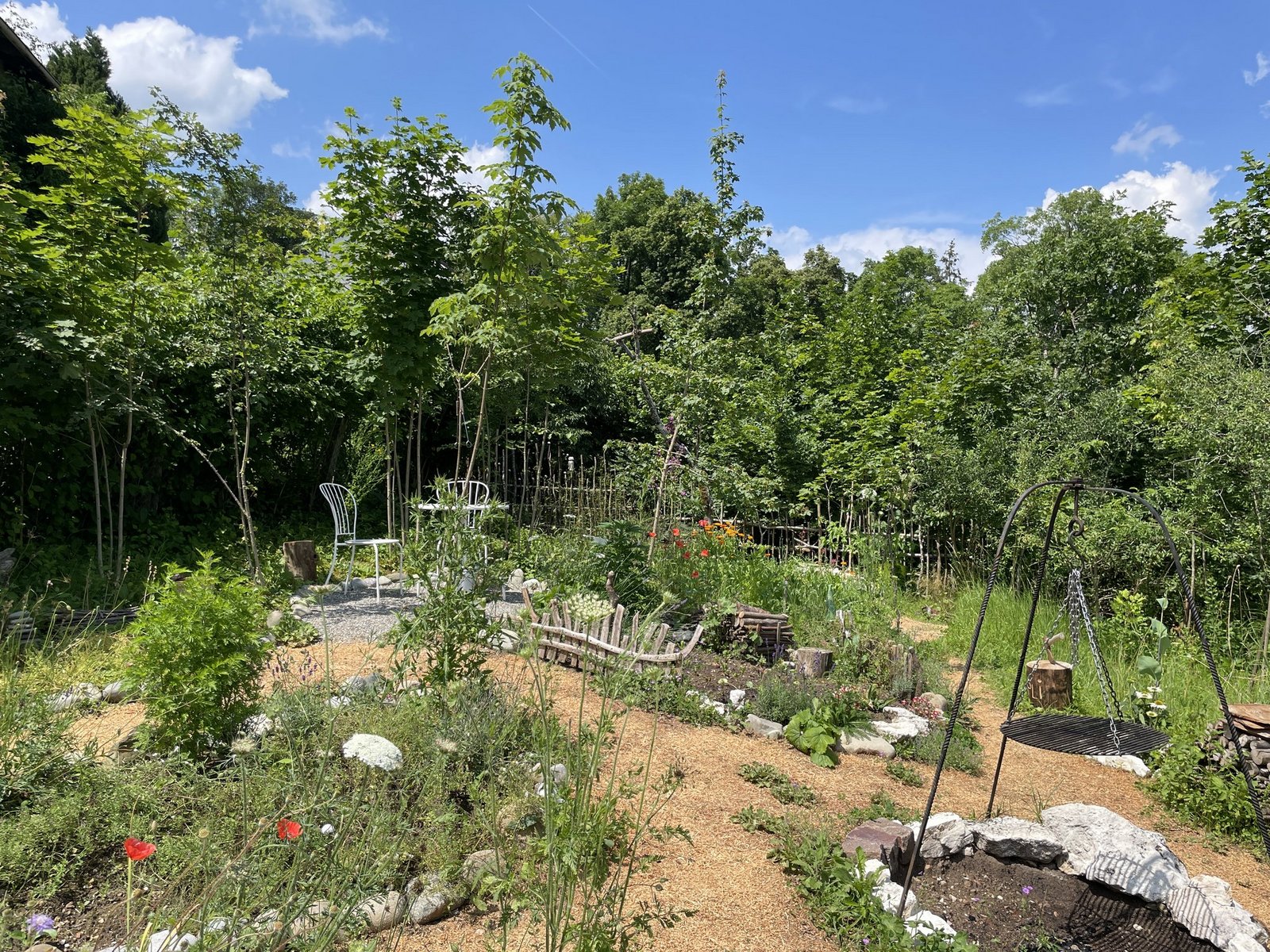 Viele Jahre arbeitete Cony Zwahlen auf dem Bau, hatte gar ein eigenes Geschäft. Nach einem Unfall musste sie sich komplett umorientieren und mietete eine Werkstatt, um aus Sturmholz Kunstskulpturen zu sägen und zu schnitzen. Die gegenüberliegende Böschung war zu der Zeit noch komplett mit Brombeeren, Weinreben und Berufkraut überwuchert, dazwischen lag viel Müll. Das juckte die naturverbundene Unternehmerin in den Fingern. Mit der Idee, einen Platz für Schmetterlinge zu schaffen, fragte sie ihren Vermieter, ob sie die verwilderte Böschung zähmen dürfe. Sie durfte und begann 2022 mit der Errichtung einer biodiversen Oase.
