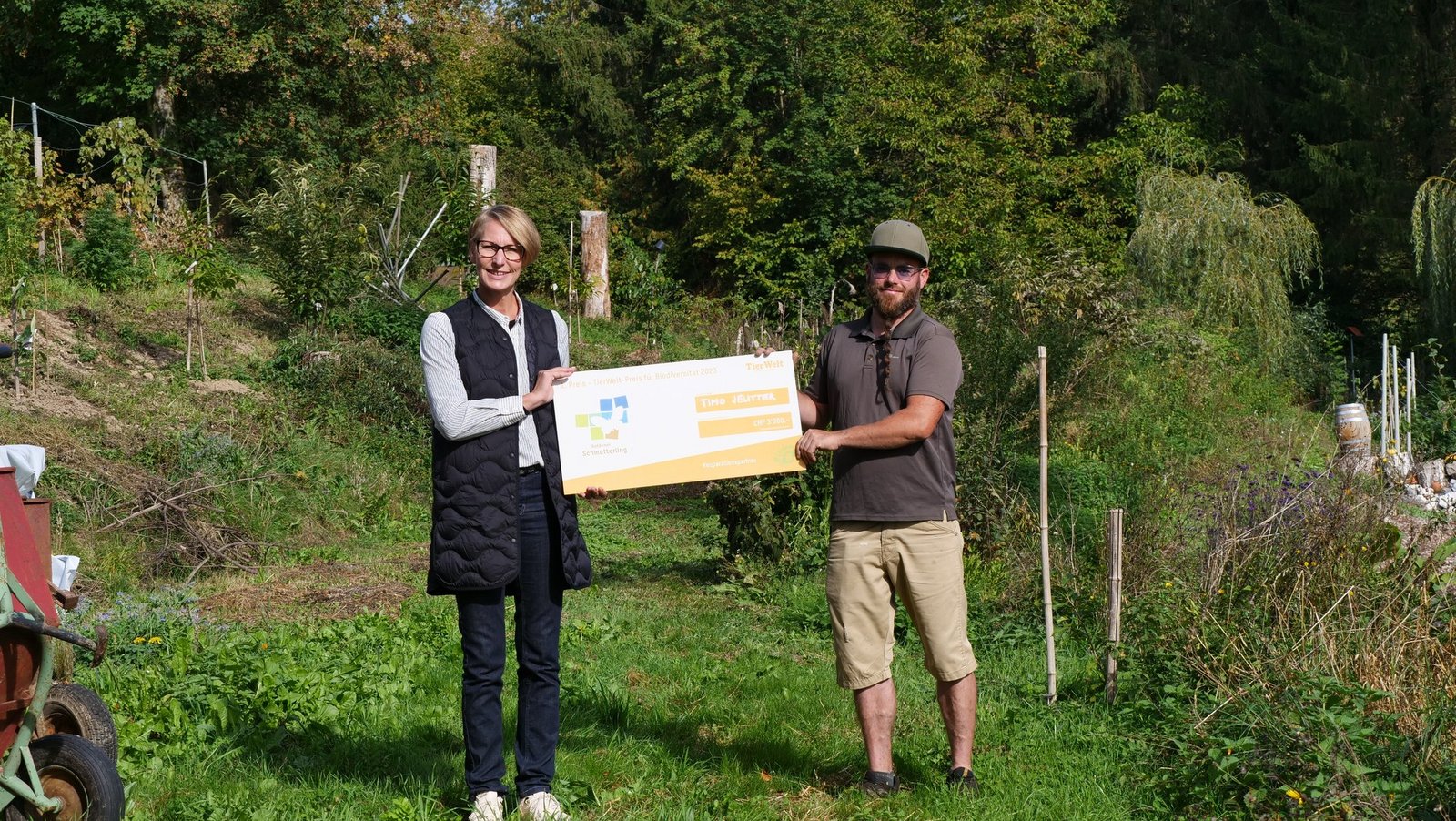 Über 75 Leute haben sich aus der ganzen Deutschschweiz für den Biodiversitätsaward beworben, elf Projekte schafften es schliesslich ins Finale. Nun steht der Gewinner des Publikumsvotings fest: Es ist Timo Jeutter mit seinem 8000 Quadratmeter grossen essbaren Waldgarten.