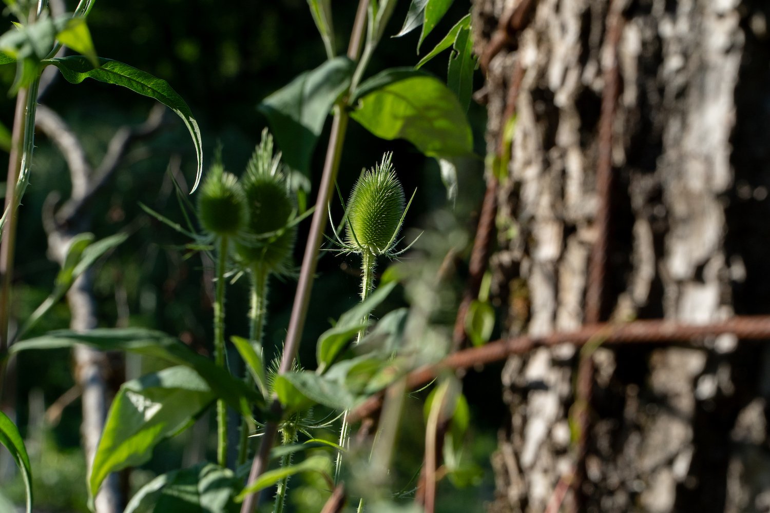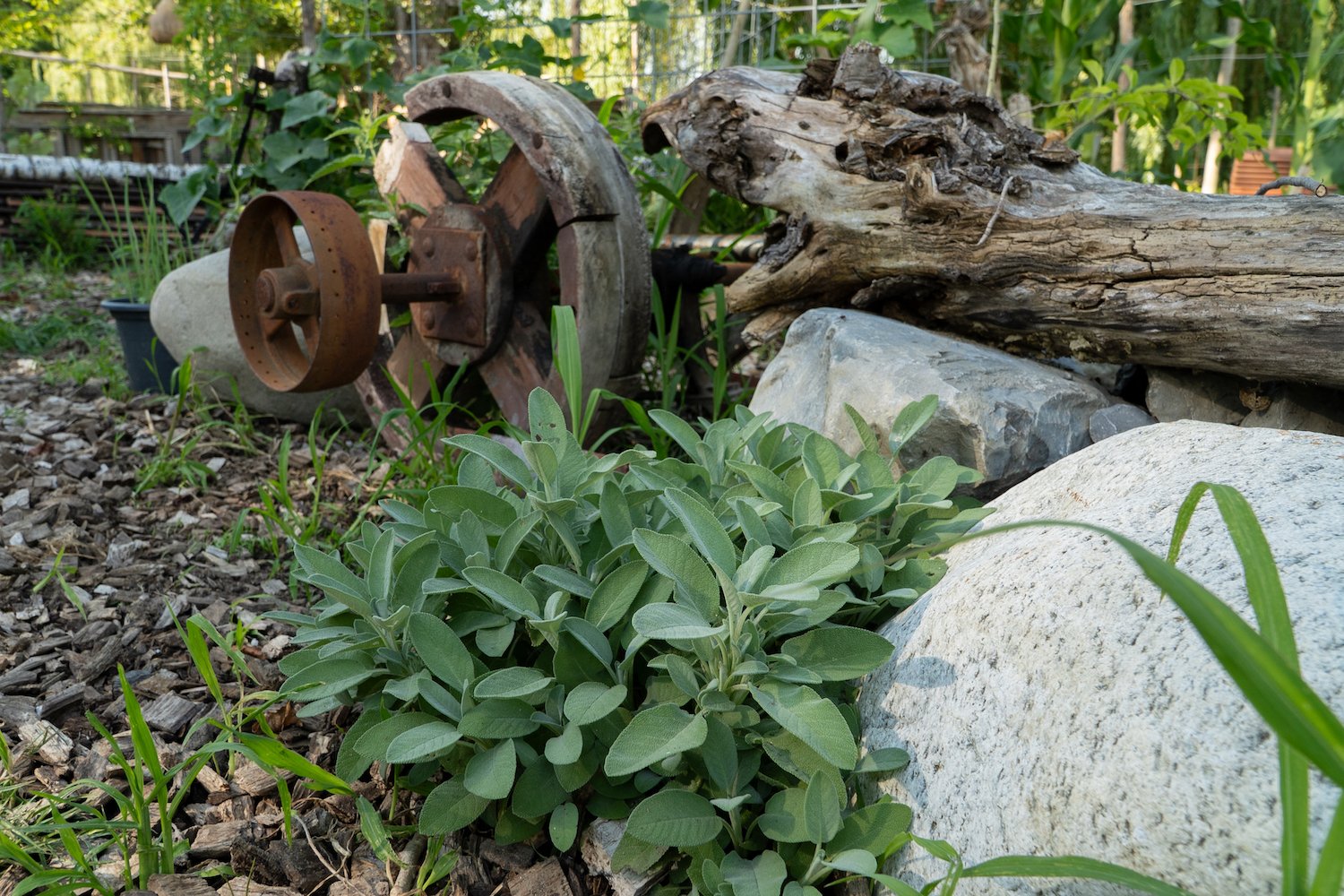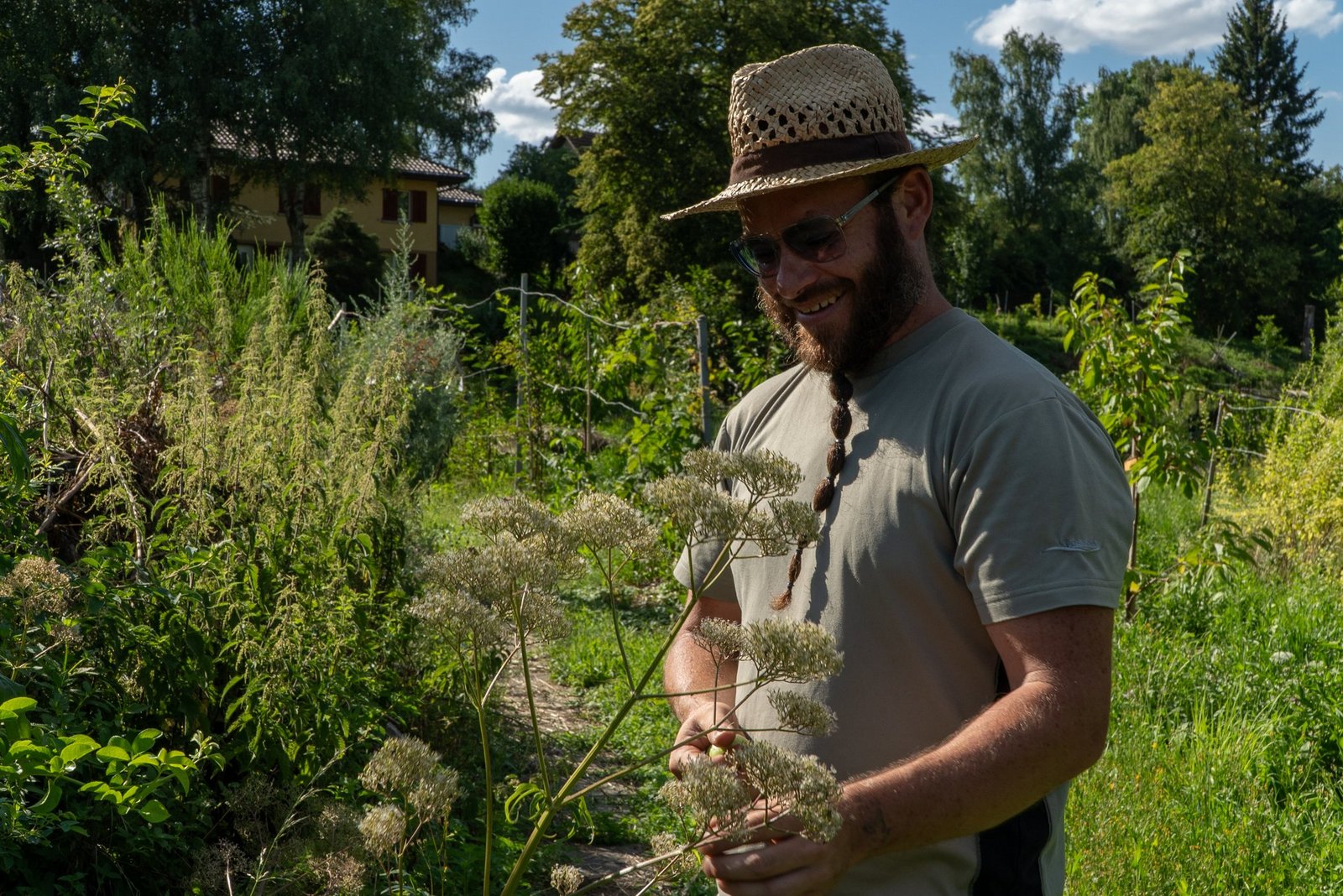 Auf den ersten Blick erscheint Jeutters Garten etwas chaotisch. Doch bei näherem Hinsehen entdeckt man ein System dahinter, denn der 39-Jährige hat sich einiges überlegt. Als Inspiration orientierte er sich an einem sogenannten Drei-Zonen-Garten, wie er erzählt, wo Totoholz-Hecken, Gemüsegarten und magere Wildblumenwiesen aufeinandertreffen. Er funktioniert als eigenständiger, biologischer Kreislauf, wo nichts zugeführt aber auch nichts weggeworfen wird – Pflanzenabfälle landen im Kompost oder werden zum Mulchen gebraucht und alte Äste erweitern die Hecke oder bilden Totholzhaufen. Alle Gartenzonen sind miteinander vernetzt und regulieren allfälligen Schädlingsbefall selbst.