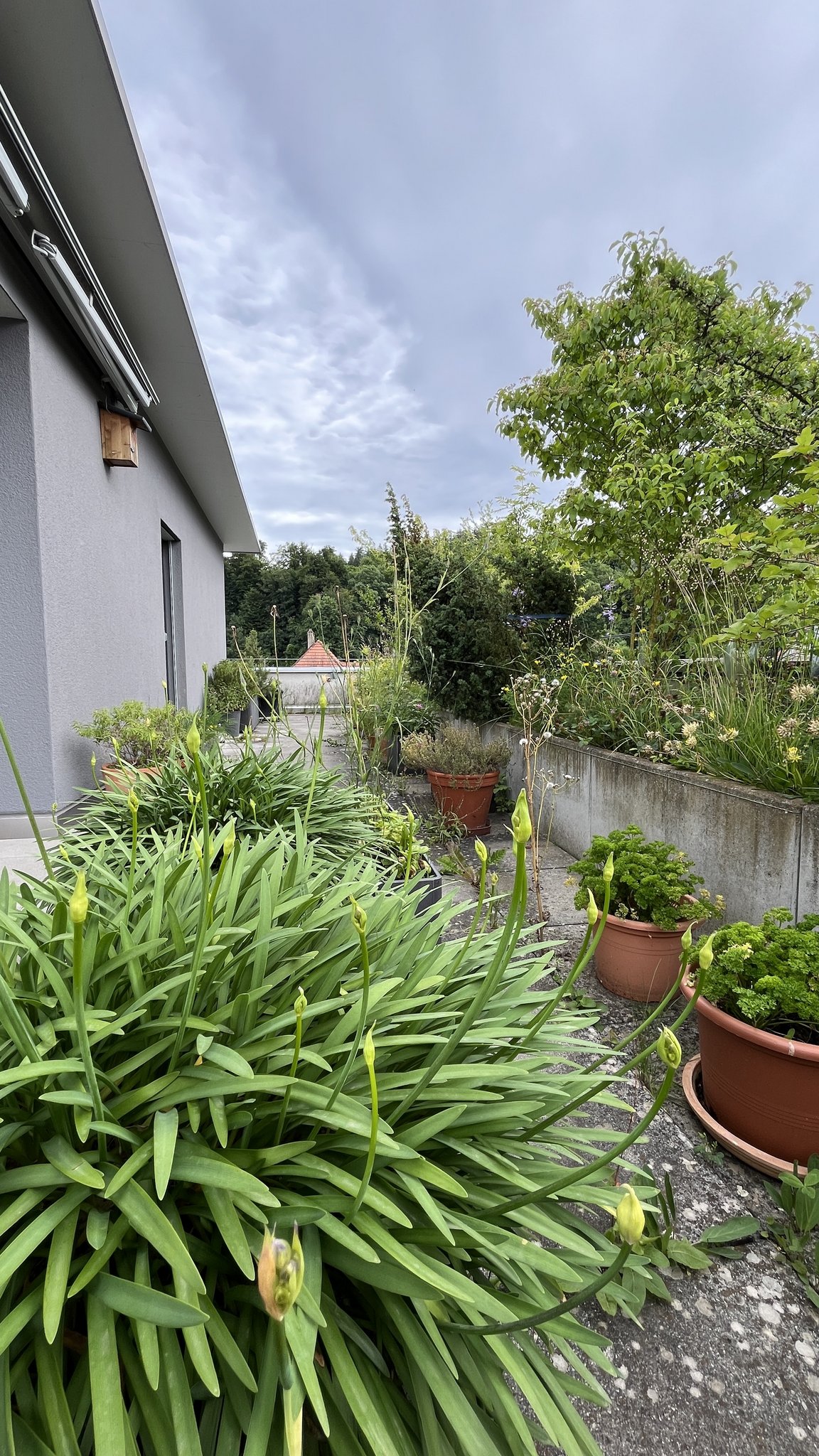 Am meisten Freude haben wir an den Mauerseglern. Es ist grossartig, dass es überhaupt gelungen ist, sie hier bei uns in ihren Nisthilfen nisten und brüten zu sehen. Es bereitet uns immer wieder Freude, wenn wir sie beim Fliegen rund um die Wohnung beobachten können. Unsere Lieblingspflanze ist die Knäuelglockenblume, die momentan leider verblüht ist. Doch wenn sie blüht, ist sie mit ihren blauen Glocken besonders schön anzusehen. Und die hohe Hauswurz, die immer wieder blüht, ist ganz speziell.