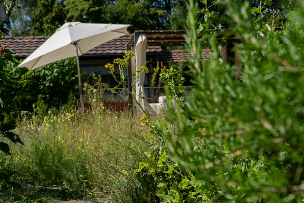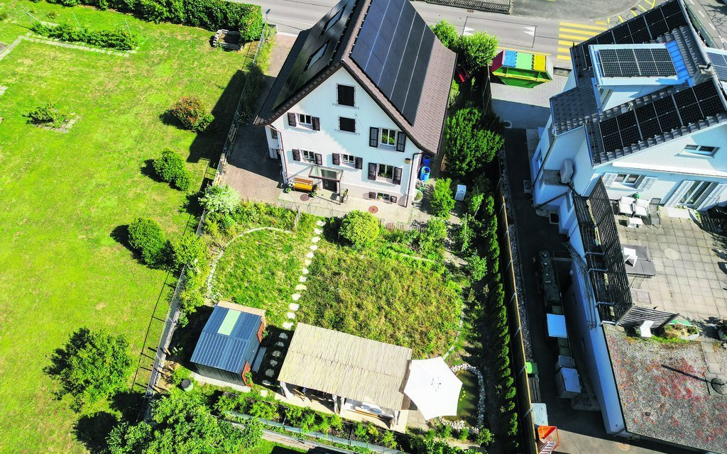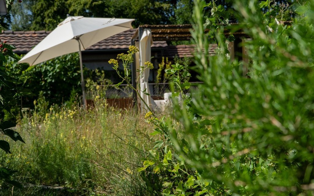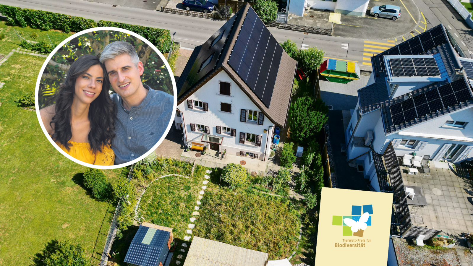Kaum ist Matthias Wild mit seiner Frau Camila aus der Zürcher Altstadt nach Buchs bei Aarau gezogen, begann er den strukturierten Garten seiner Grossmutter zu bearbeiten. Nach ersten Versuchen im Vorgarten vor drei Jahren packte er das Projekt 2022 gemeinsam mit einem Naturgärtner grossflächig an und liess den kompletten hinteren Garten umwälzen: Der grüne Rasen wich einer Blumenwiese mit einem Gehweg aus Steinen eines nahegelegenen Steinbruchs. Neben dem Sitzplatz hat Wild vor einigen Wochen einen Teich angelegt, der bereits rege von Wildtieren besucht wird. Auch den Vorgarten zieren Wildpflanzen und ein kleiner Teich, den Libellen immer wieder aufsuchen. Eidechsen haben sich ebenfalls im Garten ausgebreitet und sonnen sich auf den trockenen Steinhaufen vor dem Haus.