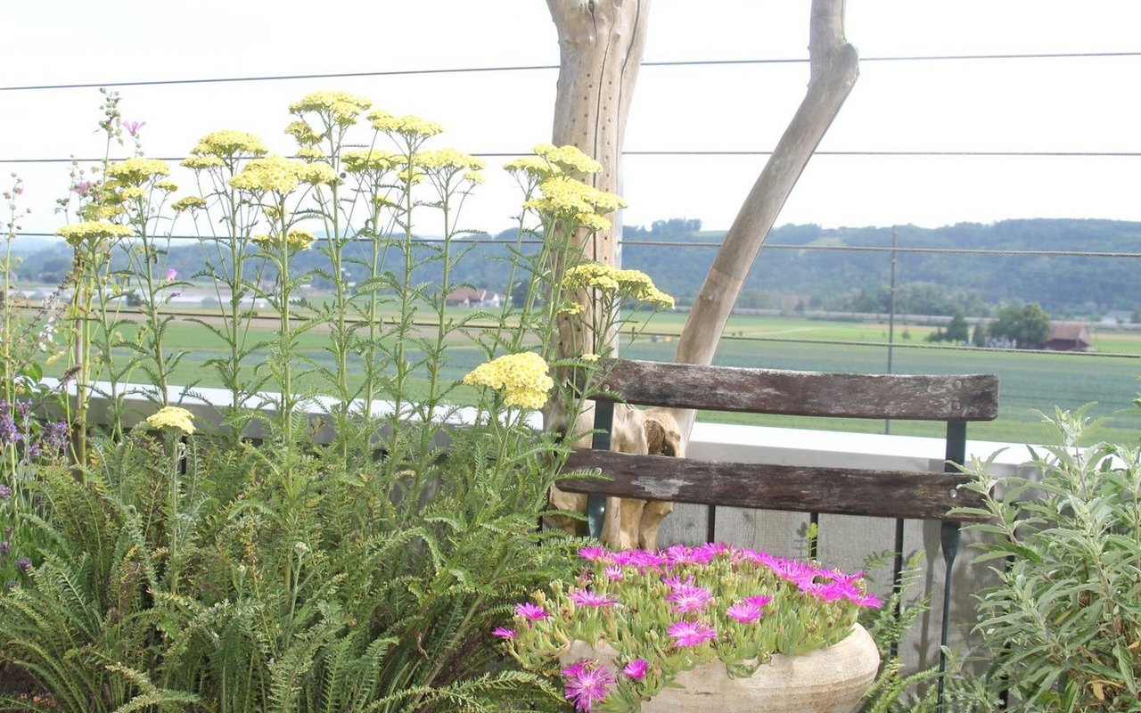 Pflanzen, Blütenfarben, Wind und Sonne dominieren auf der Terrasse von Sandro und Annja Cecchele. Ein Gefühl wie in den Ferien. Das Paar hat ein Naturparadies geschaffen, nicht nur für sich selbst. «Wir sind von Insekten begeistert», sagt Sandro Cecchele.
