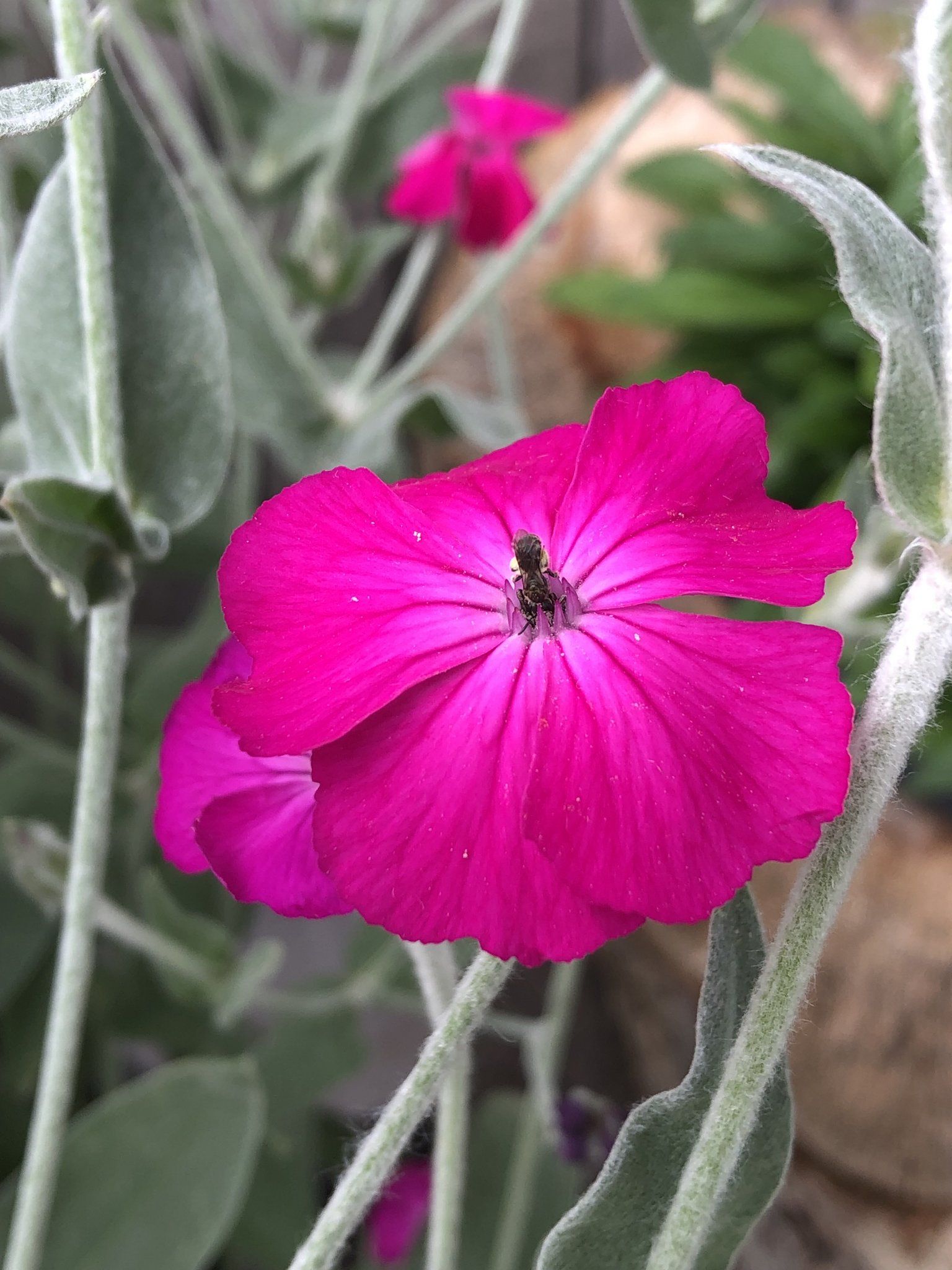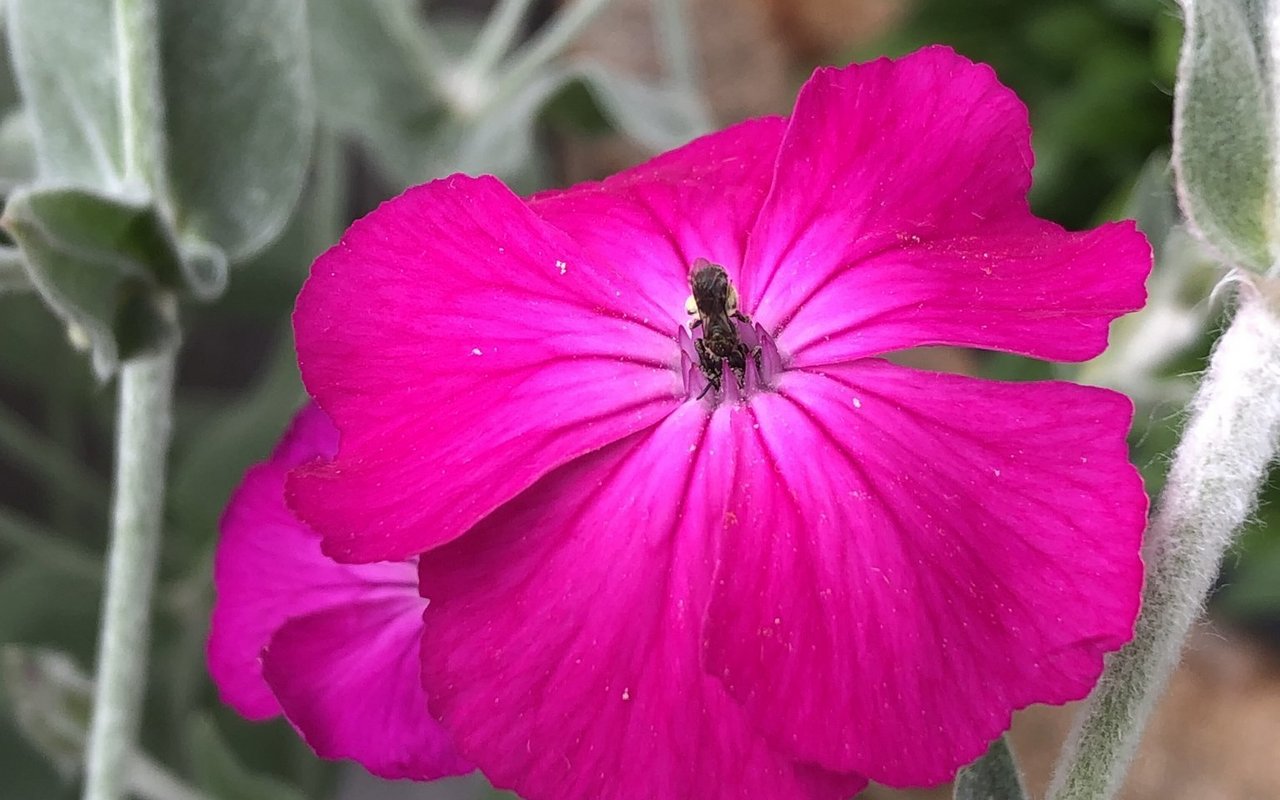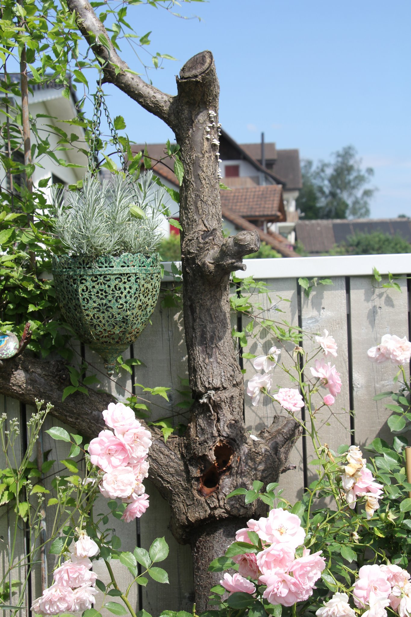 Wir wollen eine Wildrose mit einer Art ersetzen, deren Blüten noch mehr Insekten anziehen. Dann möchten wir noch mehr Malven ziehen, vielleicht auch Islandmohn.