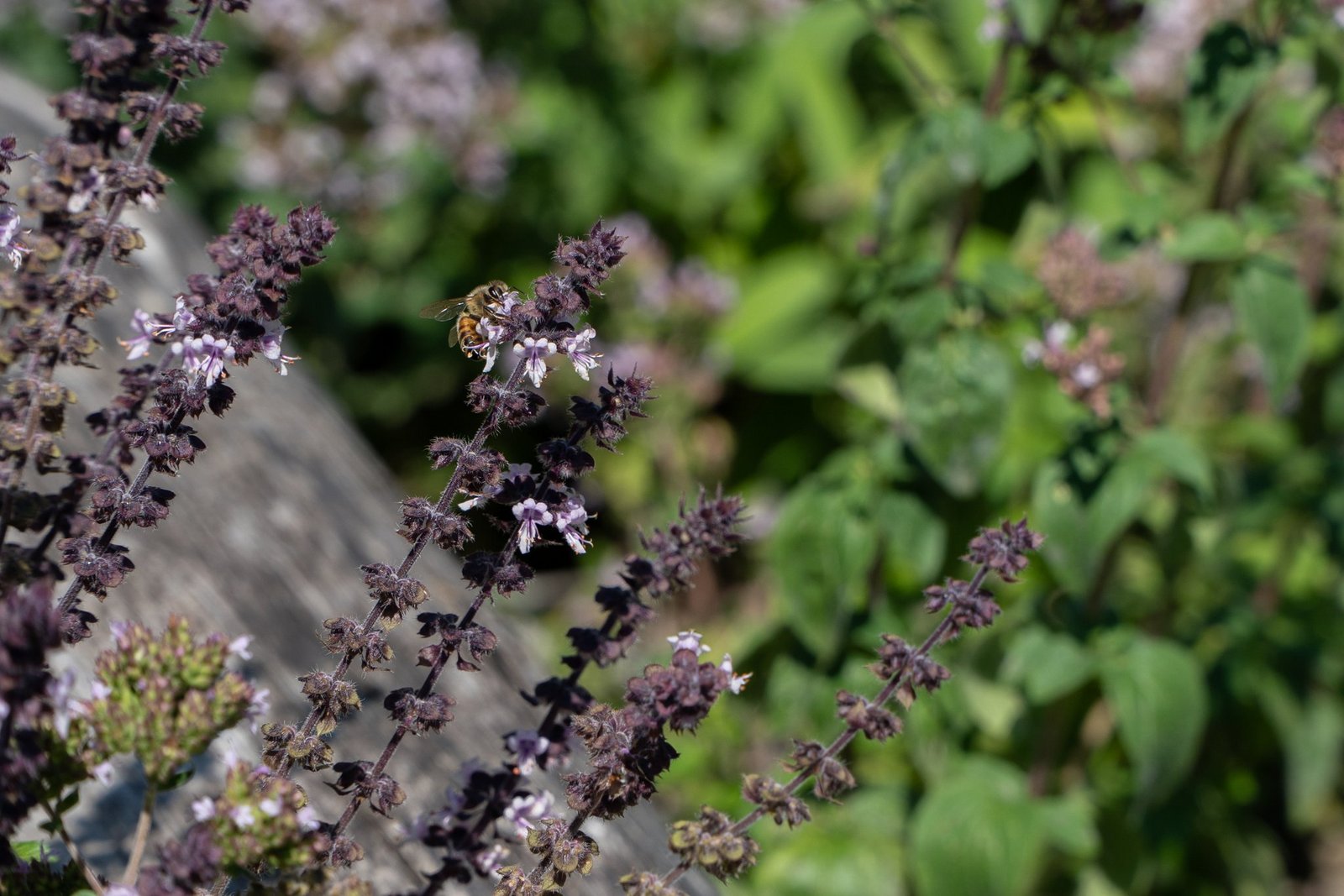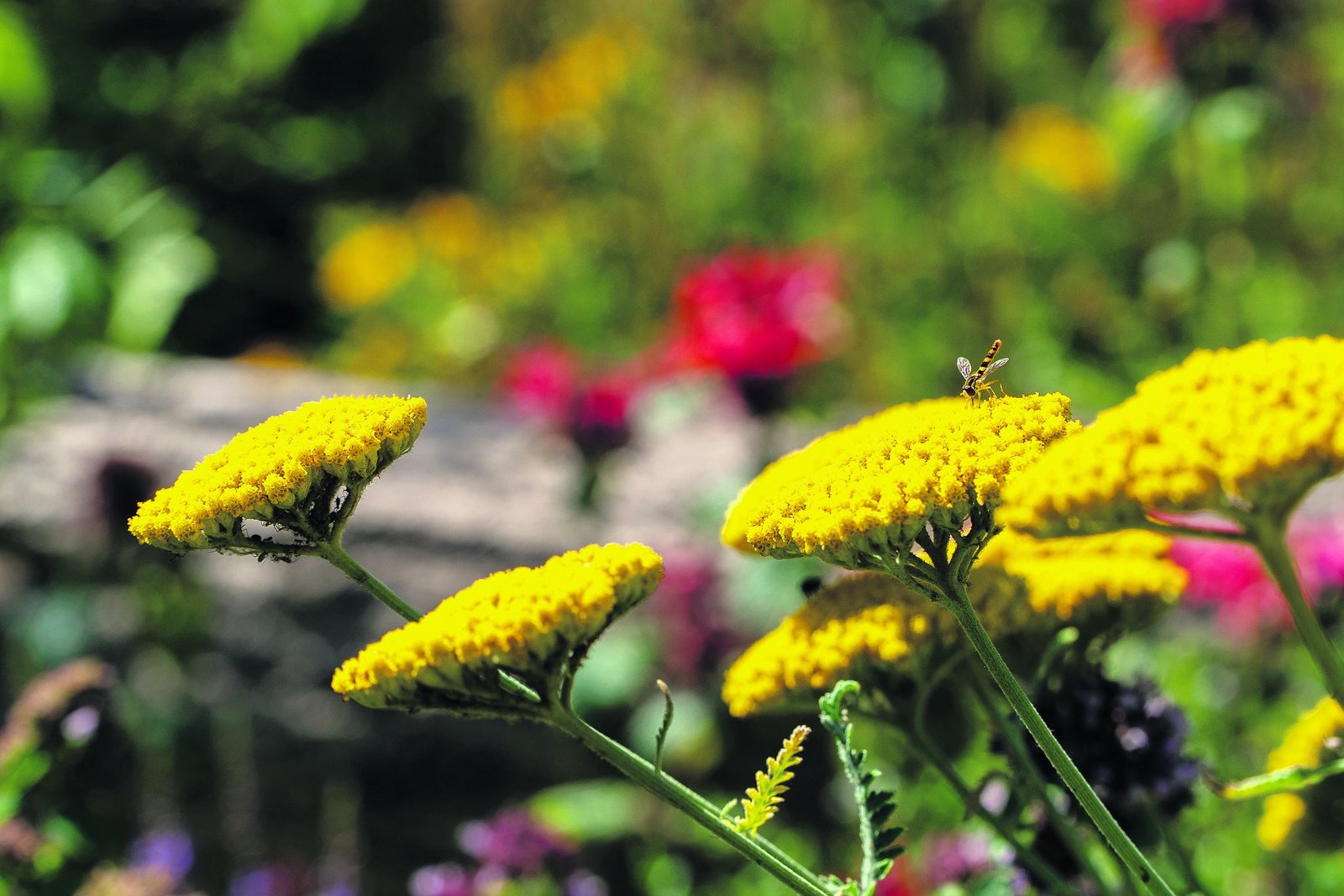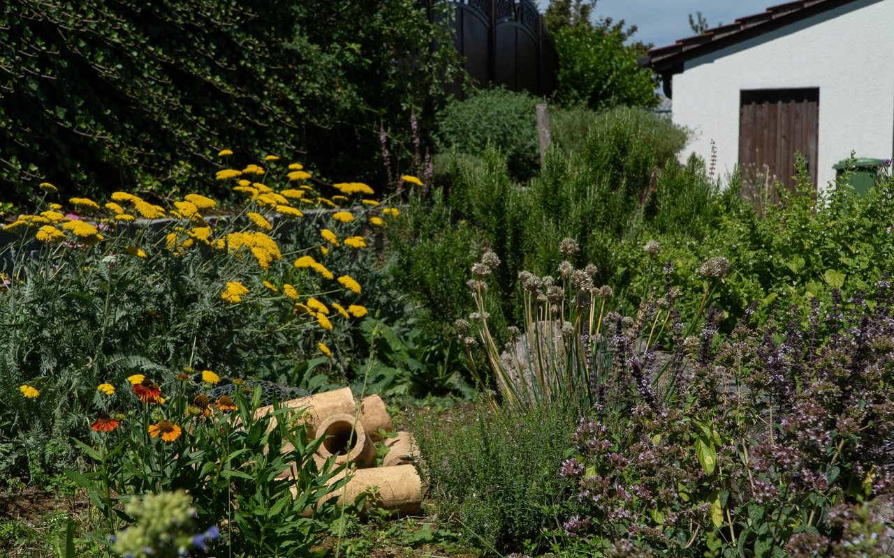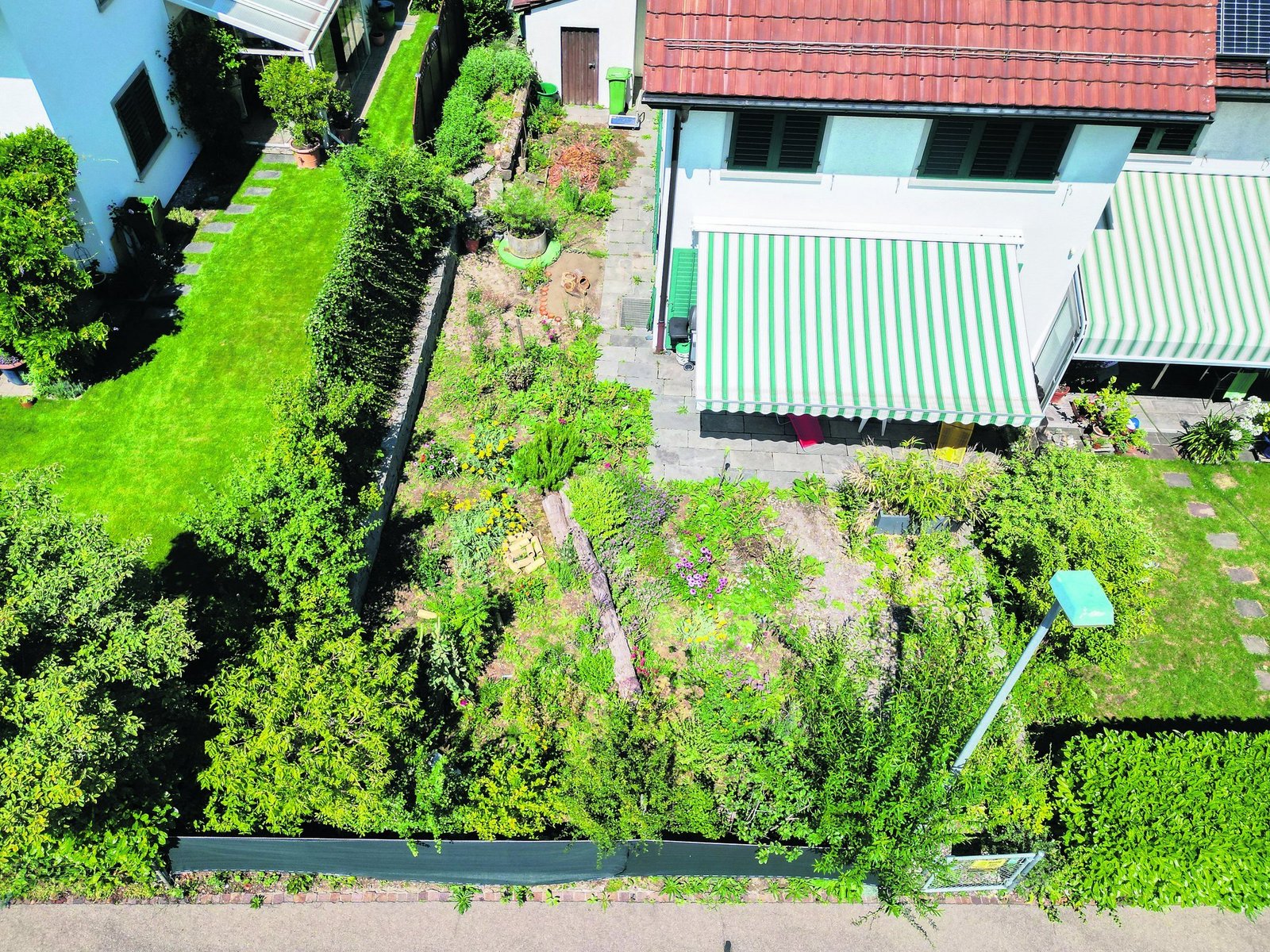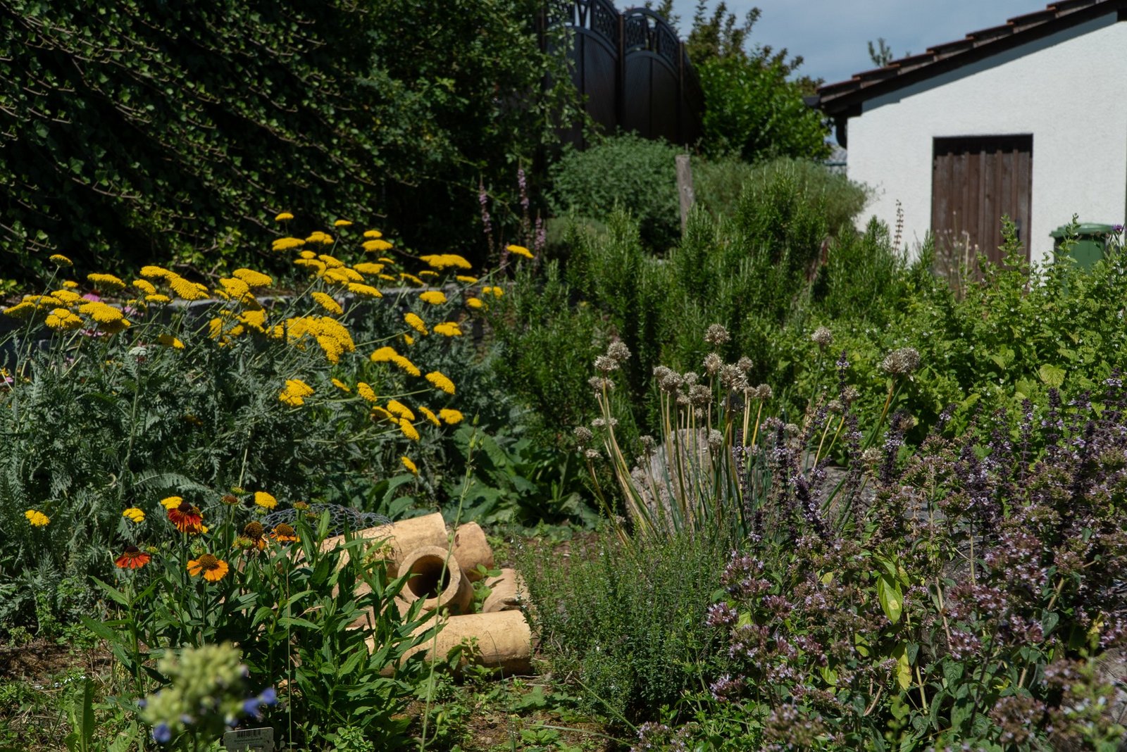 Früher pflegte Susi Manser einen englischen Garten mit grünem Rasen und Kirschlorbeer-Hecken. Während ihrer Ausbildung zur eidgenössisch diplomierten Imkerin im Jahr 2020 riss sie die Neophyten aber aus und setzte stattdessen auf den 100 m2 einen artenreichen Wildpflanzengarten, der von Februar bis Dezember blüht und Nahrung für jegliche Bienenarten bietet. So wachsen im Einfamilienhaus-Garten Wegwarte, Natternköpfe, Wiesensalbei, Dost, Baldrian, Flockenblume, Heilzeist, Muskatellersalbei, Nachtkerze, Kornelkirsche, Schwarz- und Weissdorn und vieles mehr auf engstem Raum. Unzählige Wild- und Honigbienen sowie Schmetterlinge machen sich gleichermassen über das Blütenmeer her. «Ich möchte zeigen, dass Wildbienen und Honigbienen nebeneinander existieren können», sagt Manser. Besonders Freude hat sie an der Königskerze, die sich im Garten breit macht und die bis zu ihrem Absterben vier Jahre lang ökologisch wertvoll sei.