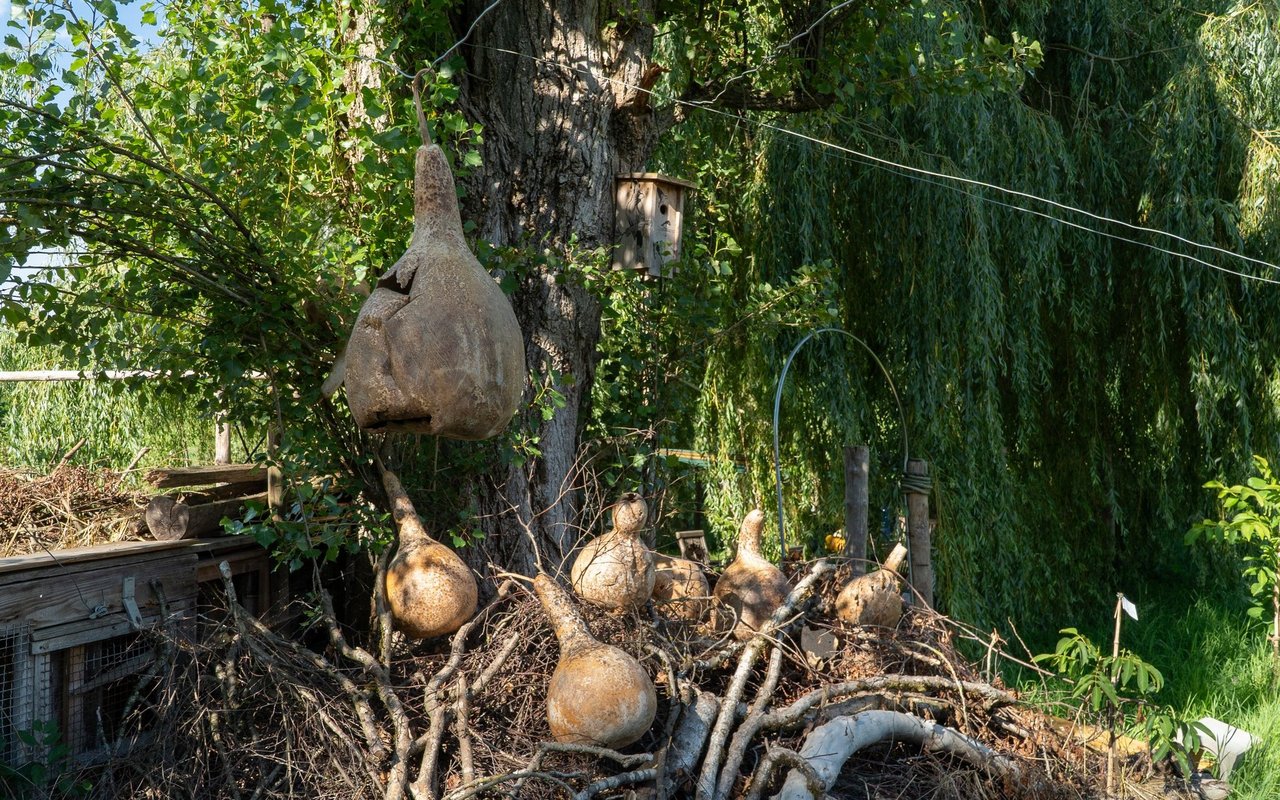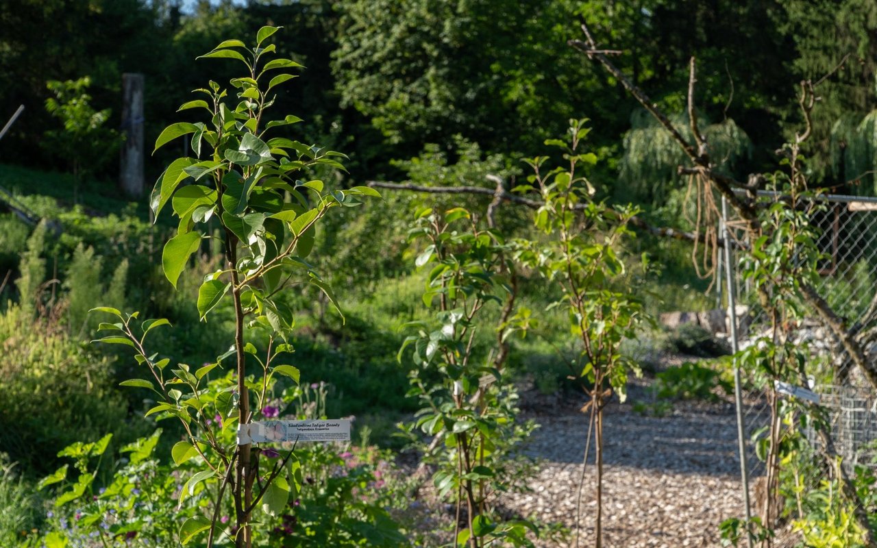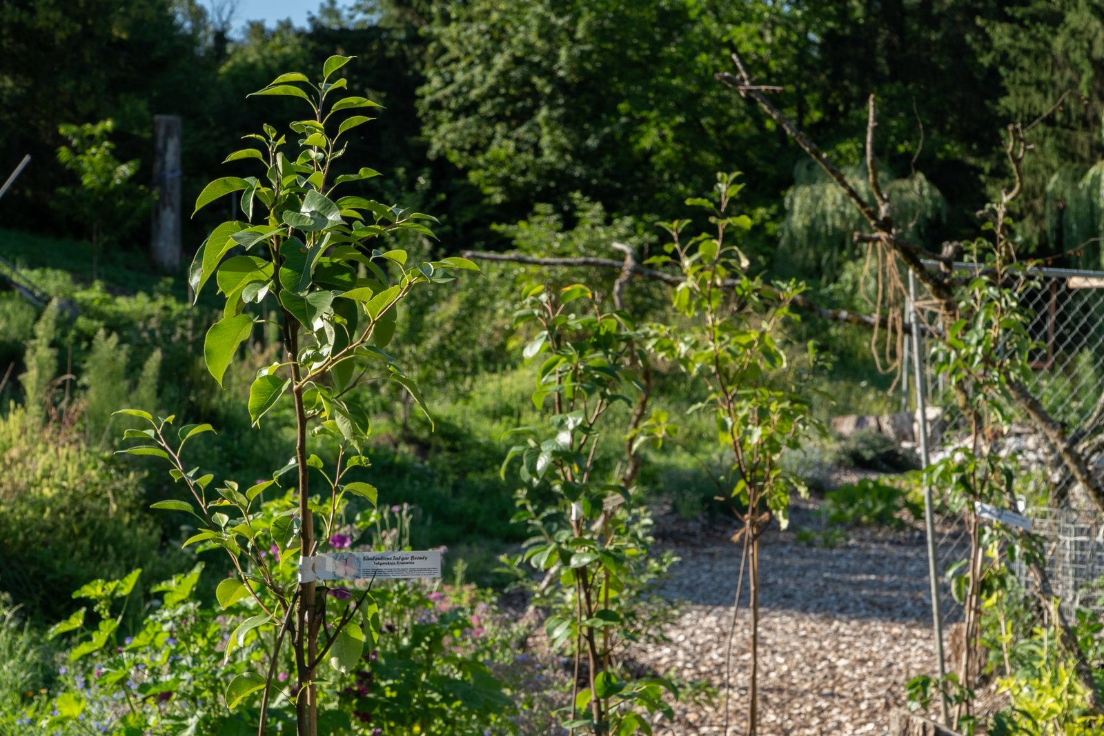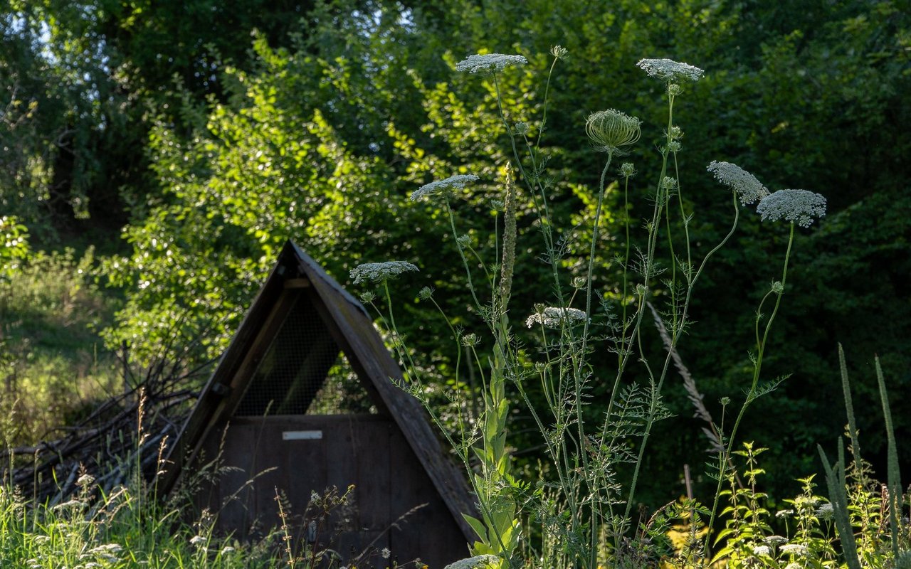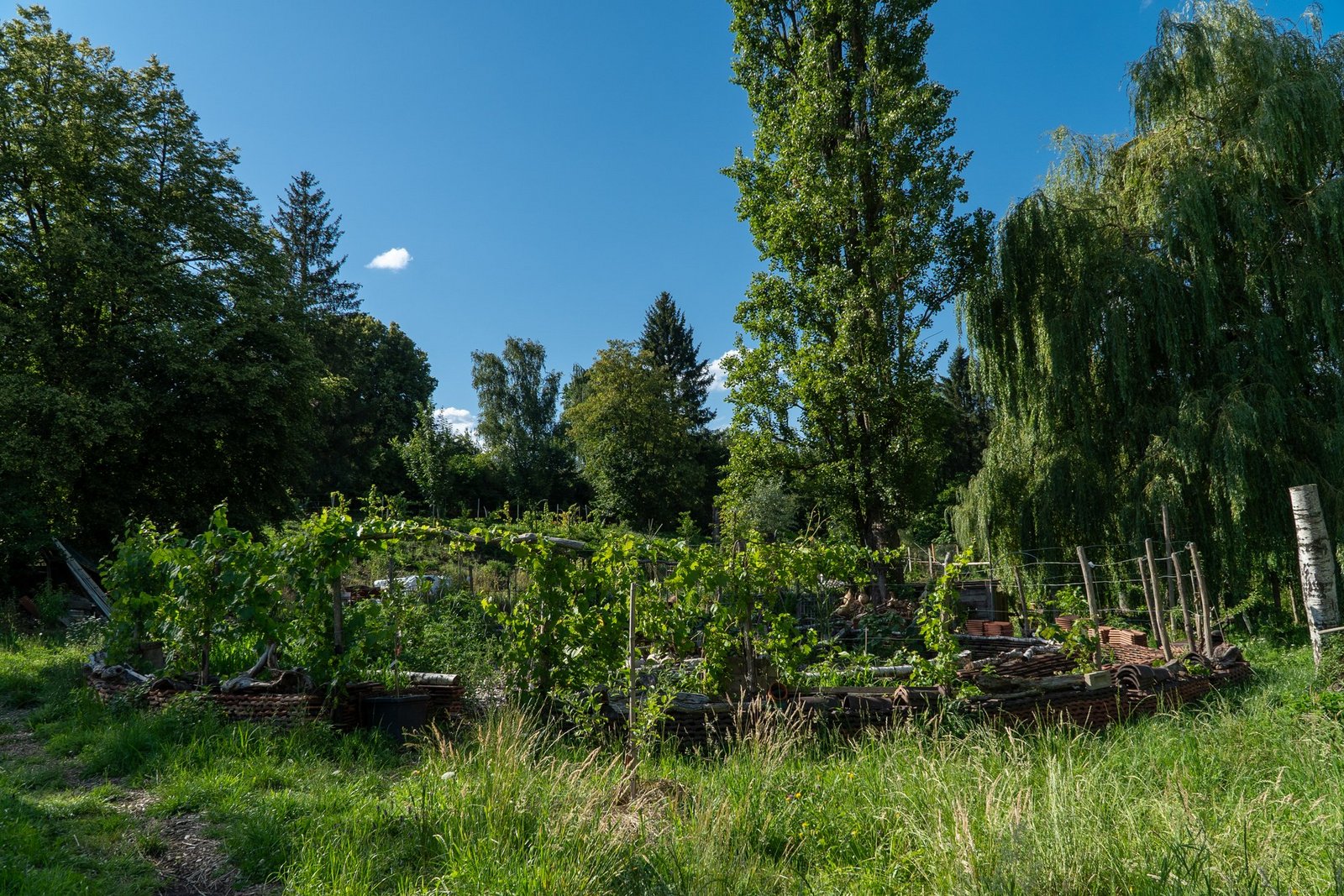 Am Hang wachsen diverse junge Obstbäume und Wildstauden: Hochstamm Apfelbäume, Walnuss, Marroni, Bayerische Kiwi, Mispel und vieles mehr. Das Herz seines Gartens, wie er es nennt, ist der grosse Kompost zwischen dem vorderen und dem hinteren Bereich. Das Ganze wird gegen Westen durch eine wilde Wiese und eine 90 Meter lange Benjeshecke zum Nachbaren abgegrenzt. Dort haben sich bereits diverse Kröten und Frösche in drei kleinen Teichen eingenistet, die sich zwischen Rohrkolben und Seerosen zuhause fühlen. «Es wird jedes Jahr schöner», sagt Jeutter. Er habe aber noch ganz viel vor, etwa weitere Trockensteinmauern oder einen Käferkeller bauen.
