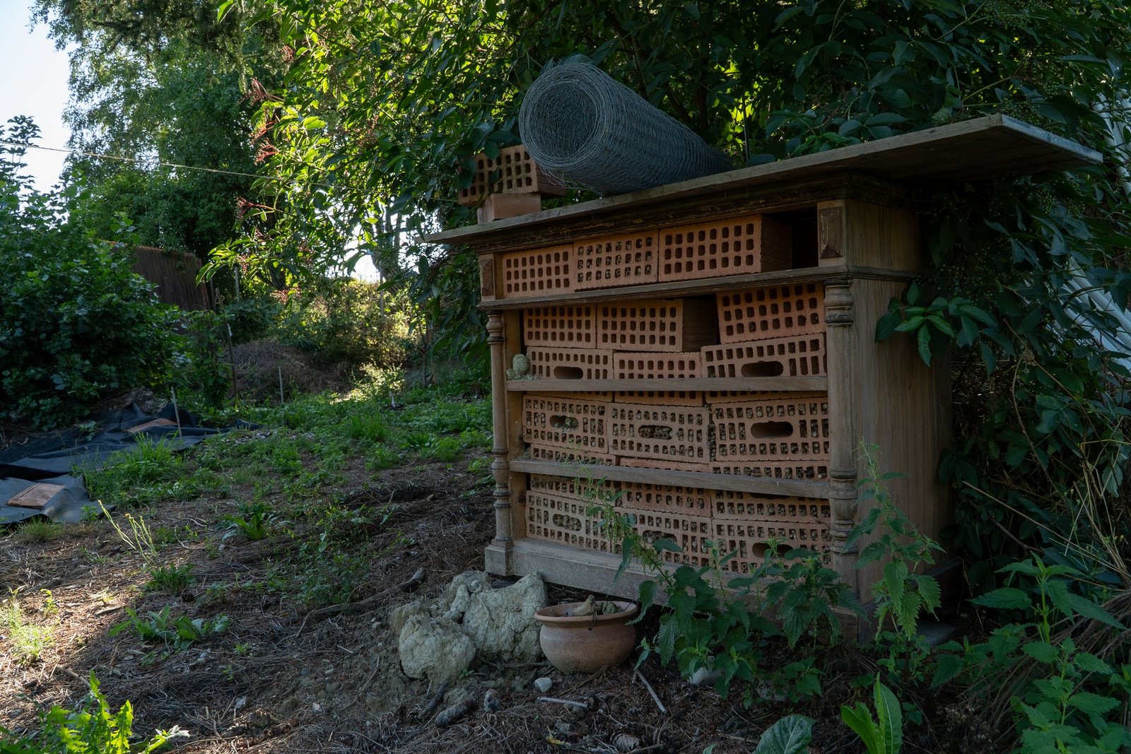 Es gab viele aufwendige Projekte. Die meiste Arbeit steckt wohl in den riesigen Benjeshecken, den Totholzhaufen und dem Pflanzen von hunderten von Bäumen und Sträuchern. Das grossflächige Anlegen der Blumenwiese war ebenfalls harte Arbeit. Auch das Sammeln der alten Dachziegel und der Bau des Sandarium ging über Wochen.