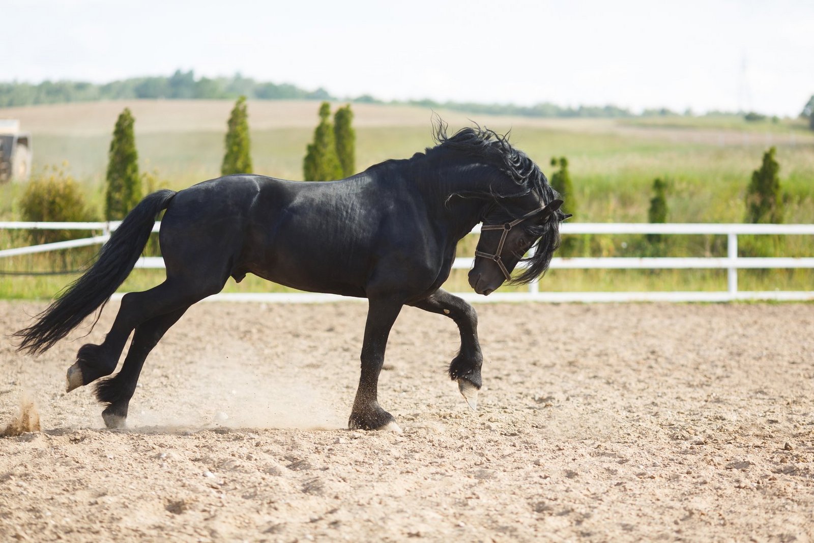 Sie gehören zu den Barockpferden, tragen welliges Langhaar und glenzen in Schwarz. Die Warmblutrasse Friese zeigt ihre eleganten Gänge als Dressur- oder Kutschpferd. Sie begeistert Menschen auf der ganzen Welt.