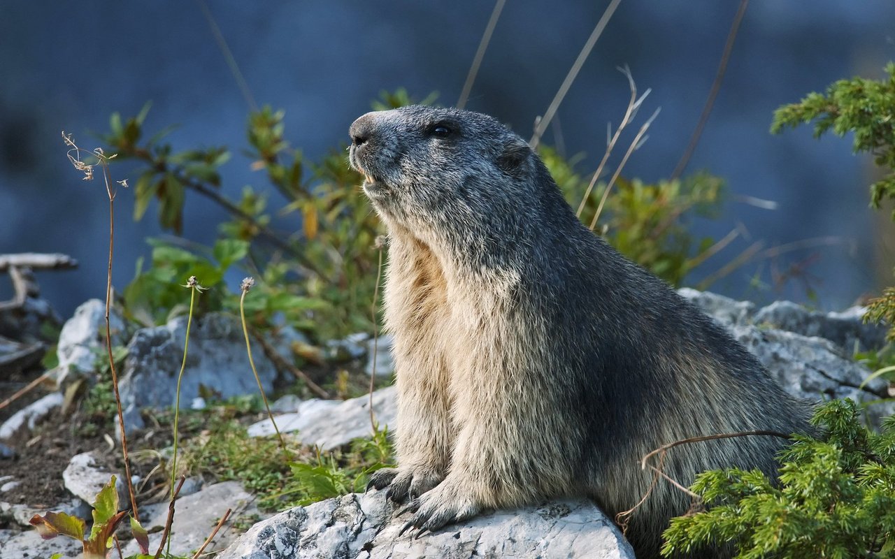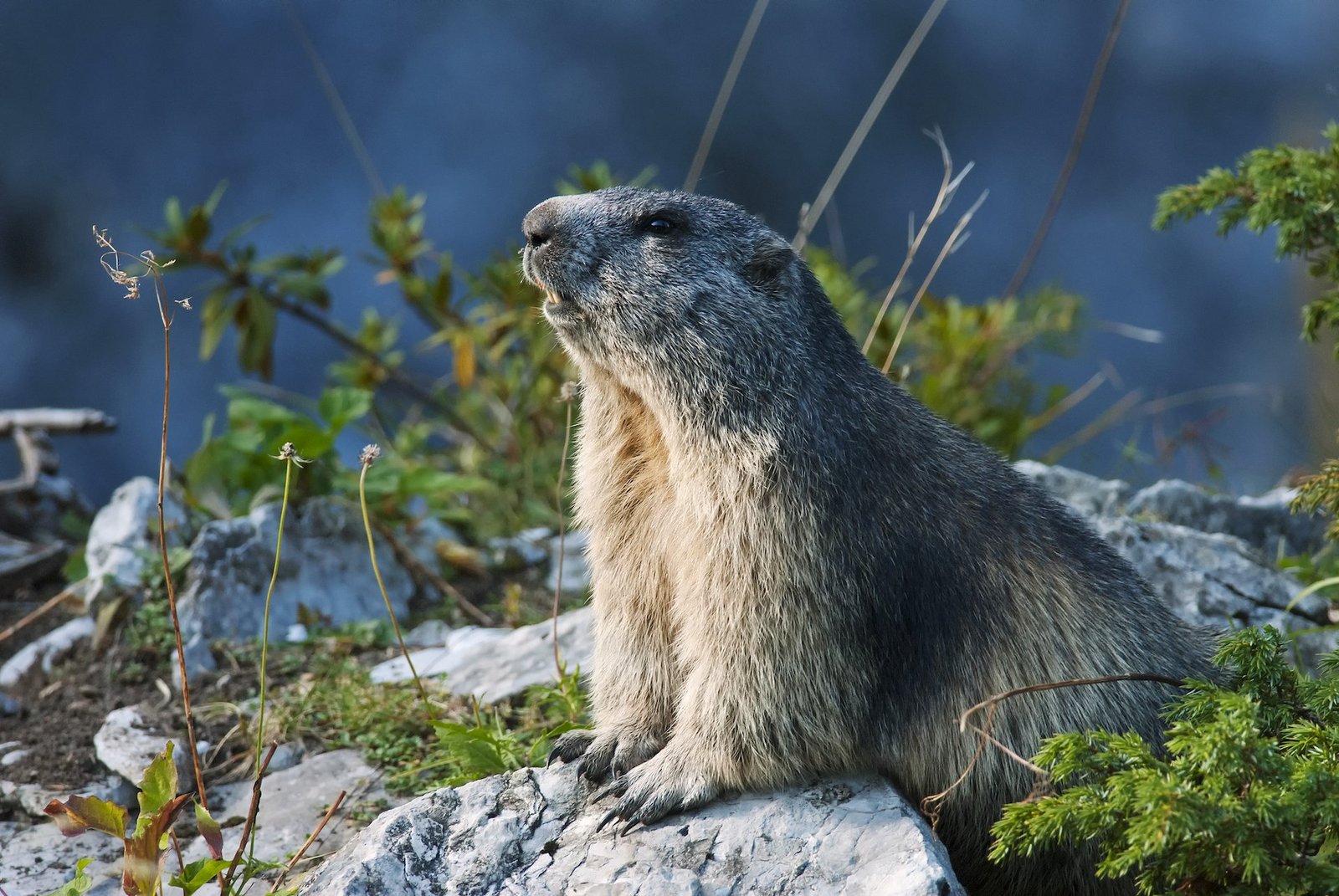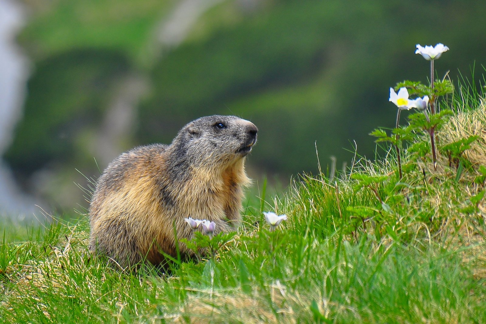 Ein erwachsenes Murmeltier frisst täglich ein bis eineinhalb Kilo Gras, Kräuter und Blumen pro Tag. Und futtert sich so bis zu zwei Kilo reines Fett an. Mit rund sechs Kilo Gewicht startet es in den Winterschlaf. Nach dem guten halben Jahr Schlaf hat das Murmeltier 40 bis 50 Prozent seines Gewichts verloren.