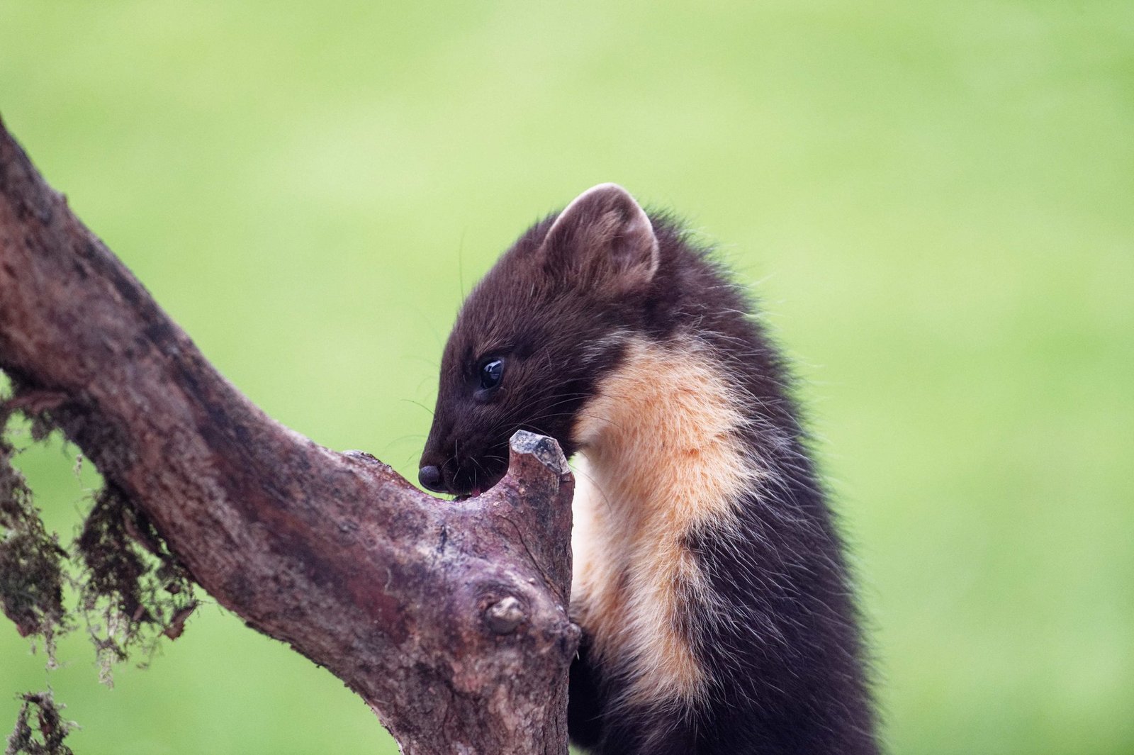 Im Gegensatz zum Steinmarder meidet der Baummarder den Weg in die Siedlungen. Er hält sich lieber in den Kronen der Bäume im Wald auf.