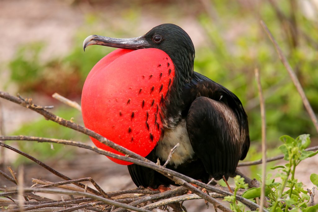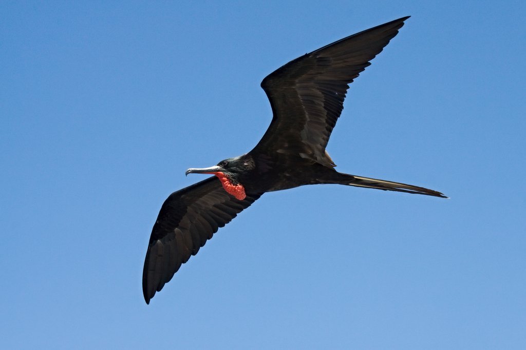 Prachtfregattvögel machen ihrem Namen alle Ehre: Besonders die Männchen sind dank ihrem Kehlsack prachtvoll. Dieser ist leuchtend rot und wird während der Balzzeit aufgeblasen, um die Weibchen zu beeindrucken.
