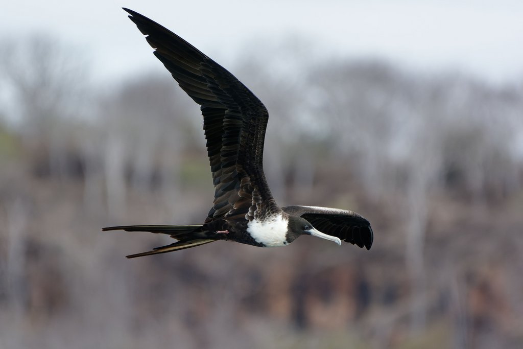 Dank ihrem leichten Körperbau und minimalem Kraftaufwand können Prachtfregattvögel wochenlang ohne Zwischenlandung über dem Meer kreisen. Sie leben an der amerikanischen Pazifikküste und an der Atlantikküste.