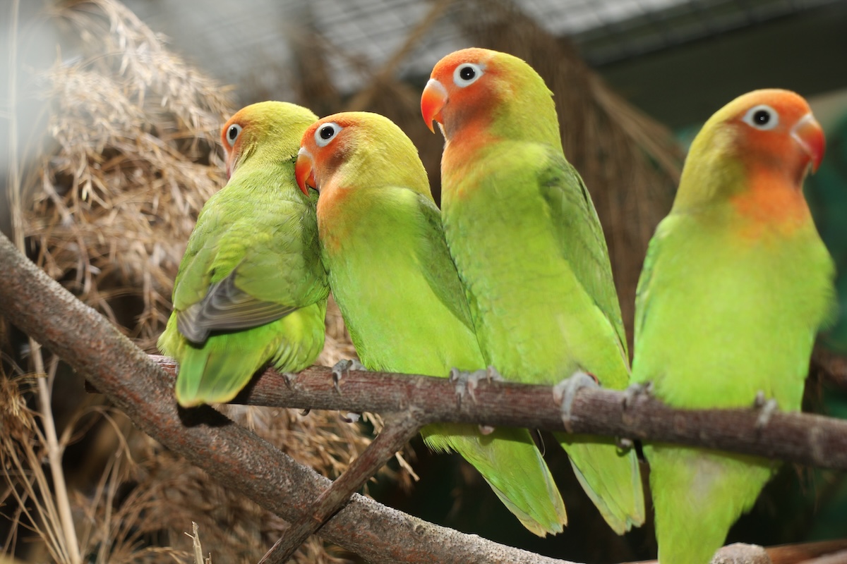 Erdbeerköpfchen gehören zu den Agaporniden oder Unzertrennlichen Afrikas. Die Kleinpapageien sind sehr sozial. Wenn Junge ausfliegen, lebt anschliessend der ganze Schwarm ohne Probleme in der gleichen Voliere zusammen. Auch die Stimmen sind dezent.