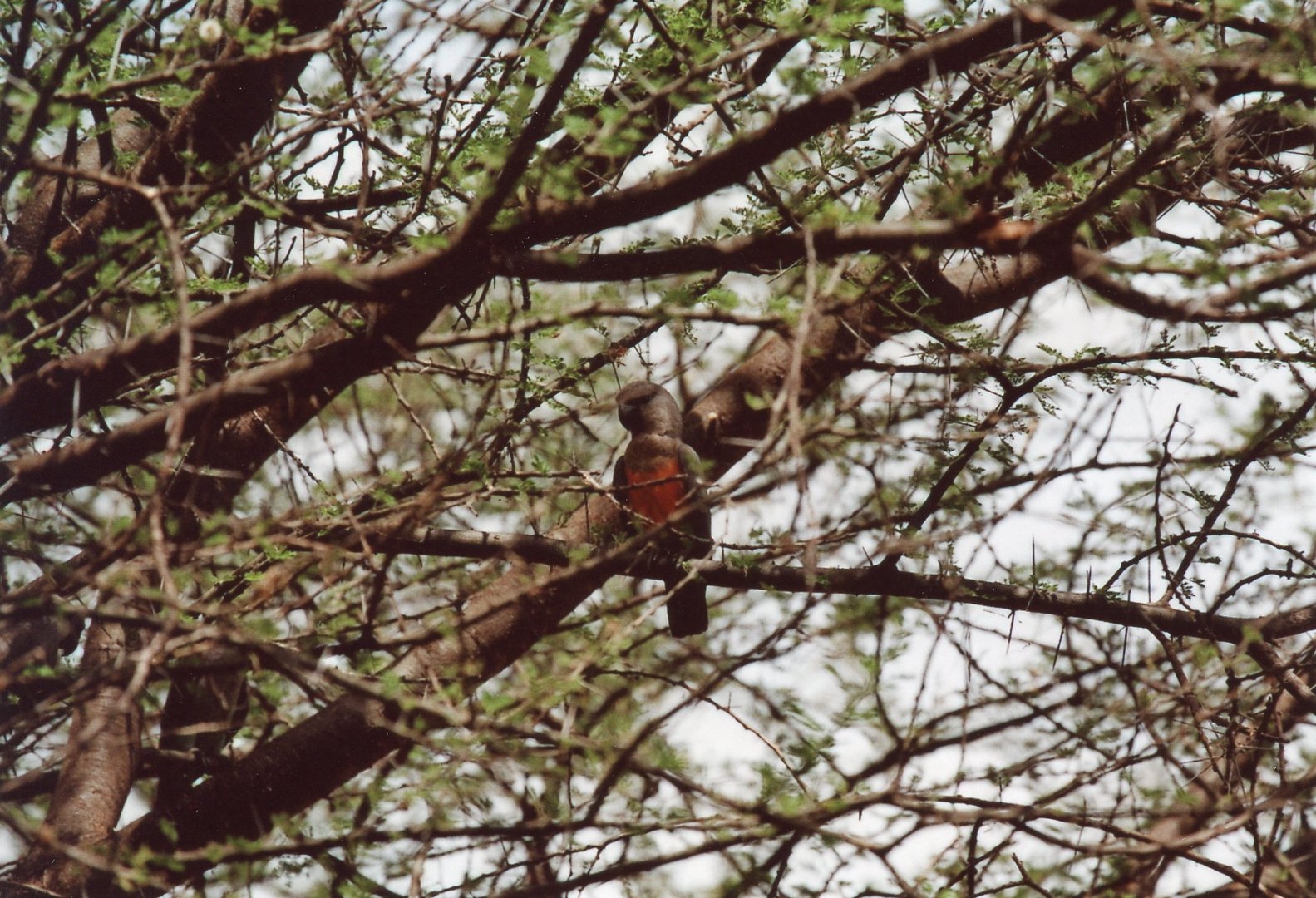 Vom ausgetrockneten Tarangire Fluss her klingt das Wiehern von Zebras in die flimmernde Hitze des ostafrikanischen Nachmittags. Einzelne Elefanten trotten im Flussbett und strecken ihre Rüssel in die wenigen Wasserlöcher. Ansonsten scheint alles zu dösen. Nicht ganz, denn aus einem Akazien-Busch innerhalb der Tarangire Lodge im Norden Tansanias fallen einzelne Blätter. Im Lichtspiel von Sonne und Schatten nesteln Rotbauchpapageien zwischen den Ästen an Blättern und Samenkapseln. Die dunkel befiederten Papageien sind kaum zu sehen, und sie verhalten sich bei ihren Aktivitäten ganz still. Nur die orangerote Brust der Männchen leuchtet aus dem Halbdunkel. Rotbauchpapageien gehören zu den Langflügelpapageien Afrikas und sind vom Norden Tansanias bis nach Äthiopien verbreitet. Sie leben in den typischen Savannen, die von Akazien und einzelnen Baobabs bestanden sind. Gegen den Abend hin weist Hussein Iddi, der Safariführer, auf ein Männchen hin, das in einem Sandpapierbaum Samenkapseln abknabbert. «In diesen Bäumen sind sie jetzt regelmässig zu sehen», flüstert der erfahrene Tierkenner, der seit Jahren mit Touristen die tansanischen Nationalparks erkundet. Normalerweise sind die Geschlechter bei Papageien gleich gefärbt, doch der Rotbauchpapagei bildet eine der wenigen grossen Ausnahmen. Nur die Männchen weisen eine solch markante orangerote Brust auf. Rotbauchpapageien kamen erstmals in geringer Anzahl 1920 nach England, starben aber dort bald wieder. Der London Zoo erhielt 1927 ein 1901 in Somalia von Hand aufgezogenes Exemplar, das länger lebte, vermutlich mindestens bis 1931. Erst ab 1980 wurden Rotbauchpapageien wieder in geringer Anzahl importiert. Es gelang, den Vögeln aus diesen Importen Bedingungen zu bieten, die sie dazu animierten, sich fortzupflanzen. 1983 gelang beispielsweise Dante Ferrari die Schweizerische Erstzucht der Exotis. So wurde diese Art langsam in den europäischen Volieren etabliert. Das war nicht einfach, denn die Sterblichkeit bei Jungvögeln war lange Zeit hoch.